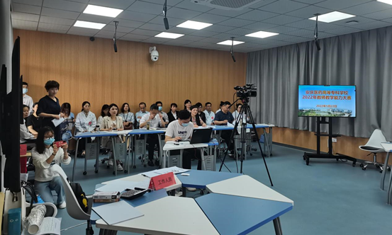 为进一步推进教师、教材、教法改革,提升教师教学能力,选拔优秀团队参加2022年安徽省教学能力大赛,5月22日,学校2022年教师教学能力大赛决赛在四号教学楼智慧教室顺利开展。比赛邀请了省内高职院校具有丰富省赛、国赛经验的专家担任评委。校领导叶林霞、姚文兵等党委班子成员,教务处、各学院负责人亲临现场观看比赛。