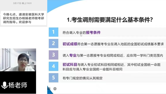 学校严格对照省教育厅联合本科培养观测点,开展本科教育教学工作,同时不断推进学风建设,优化学习环境。初试后积极组织本校教师,联系安徽医科大学药学院教授、研究生招生办杨娟老师等,从学生角度和学校角度分别开展复试和考研调剂指导,完善调剂申报材料,助力学子考研路。