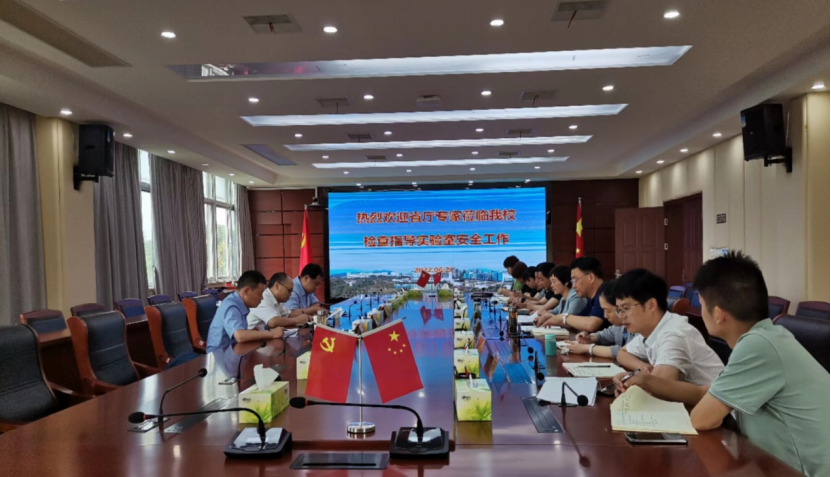 6月21日上午,省教育厅专家组一行来校开展2022年实验室安全工作现场检查。专家组由安庆师范大学汪德进教授担任组长,王钧伟教授、金宝石教授担任组员。校党委书记叶林霞、副校长朱庆丰出席汇报会,教务处、科技处、保卫处等职能部门及二级学院负责人参加会议,会议由朱庆丰主持。