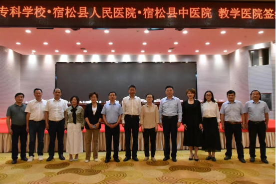 副校长朱庆丰表示,宿松县人民医院和宿松县中医院在医院管理、医疗技术、教师队伍及教学条件等方面都具备良好的条件,必定能为安庆医药高等专科学校的学生临床学习提供优良的环境。希望院校间保持紧密合作,在教学、科研等方面精诚合作,医教结合,携手共进,为社会培育更多高素质应用型医学人才。我校将在教育、卫生主管部门的领导和支持下,充分尊重宿松县两家医院的独立法人地位,努力推进医院建设、改革和发展工作。以教学医院合作为契机,与医院共同担负起医学学科建设和人才培养重任,不断提高人才培养质量,创新人才培养模式,提升医疗服务质量,真正实现校院双方资源共享,合作共赢。共同谱写地方教育和卫生事业高质量发展新篇章!