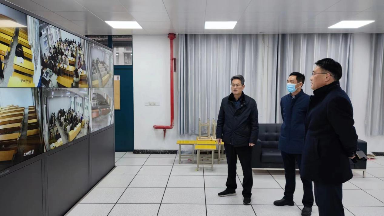 2月13日,我校2023年春季开学第一天,校纪委书记陈燚、副校长朱庆丰、党委委员刘毅带领教务处、教学质管办人员深入教学一线,对新学期教师教学、学生到堂、教学设备运行及周边环境等进行了检查。