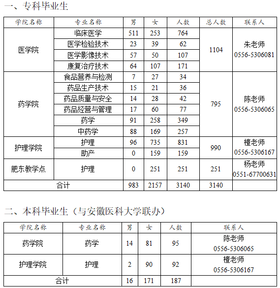 附:安庆医药高等专科学校2022届毕业生专业分布情况
