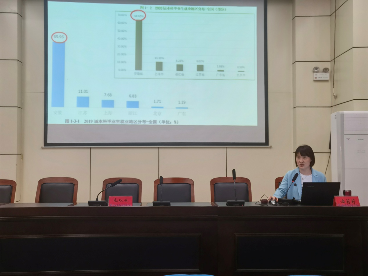 10月21日,安徽医科大学公共卫生学院党委书记潘莉莉教授受邀在我校学术报告厅开展主题为“管理自己,规划大学生涯”的专题讲座。讲座由副校长毛以成主持,学生处工作人员、2021级专升本学生代表180余人聆听了讲座。
