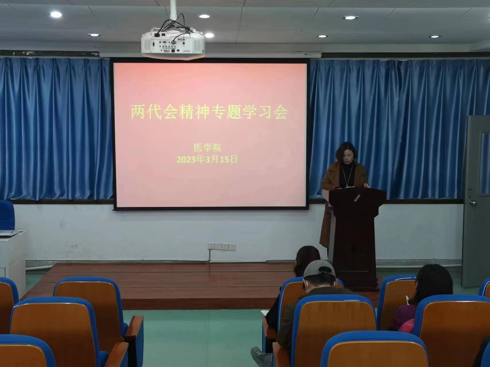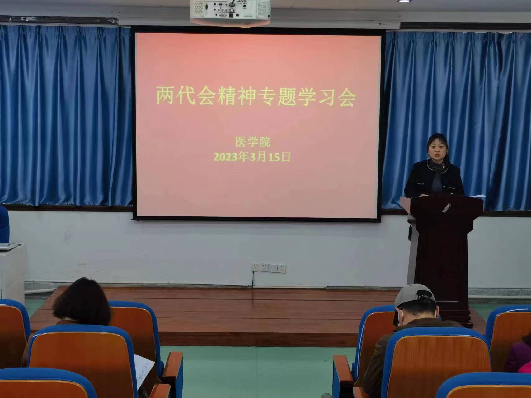 2023年3月15日,医学院召开第三届工会会员代表大会暨教职工代表大会第四次会议精神专题学习会,会议由医学院党总支书记、院长刘燕主持,医学院全体教职工出席会议。