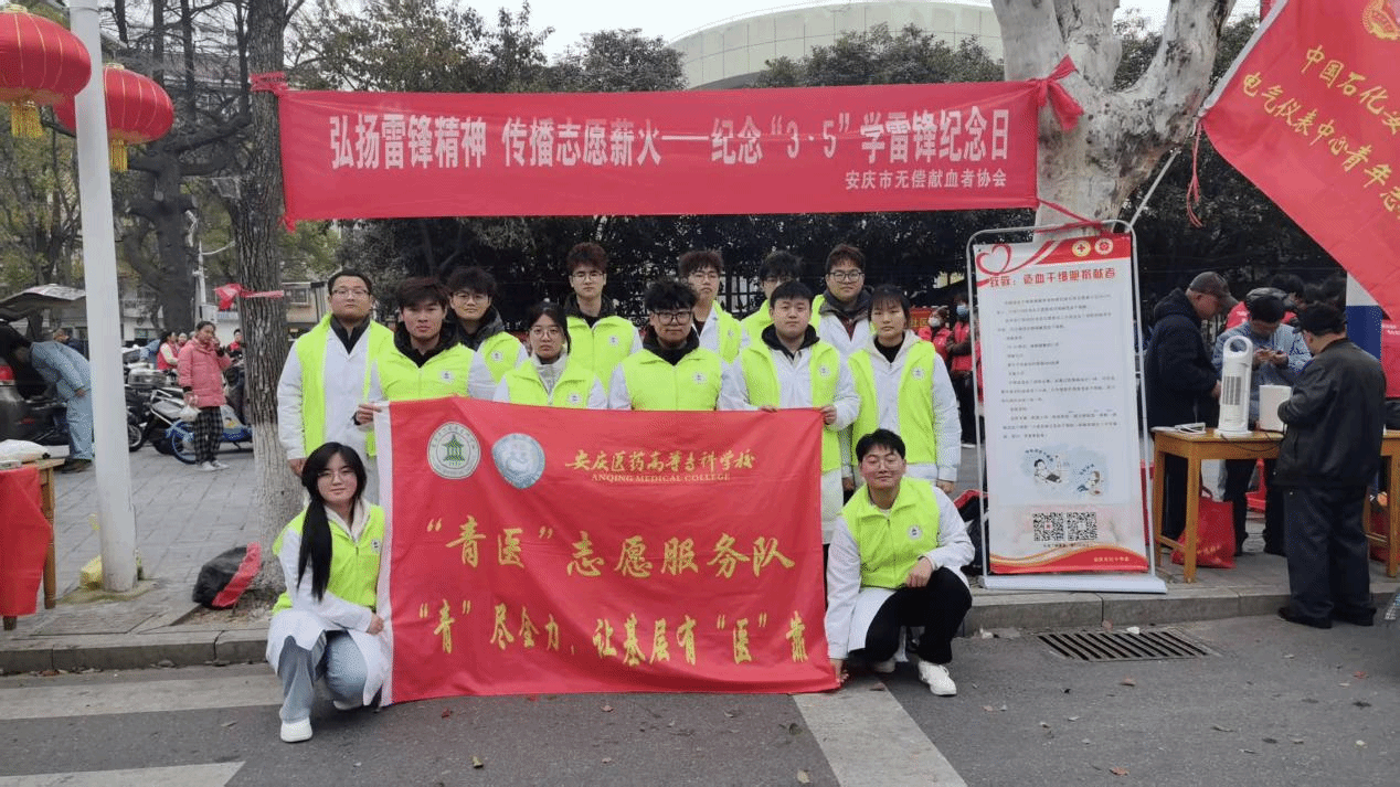 恰逢第 63 个 “学雷锋纪念日”,3 月 7 日,医学院青医志愿服务队受邀参与安庆市无偿献血协会主办的 “弘扬雷锋精神,传播志愿薪火” 学雷锋志愿服务活动。在石化大湖幼儿园门前,来自社区服务中心的医护志愿者与青医志愿服务队的青年志愿者们早早到场,精心布置服务摊位,将基础健康检查、中医特色护理与急救技能科普,用专业与热忱践行雷锋精神,守护社区居民健康。