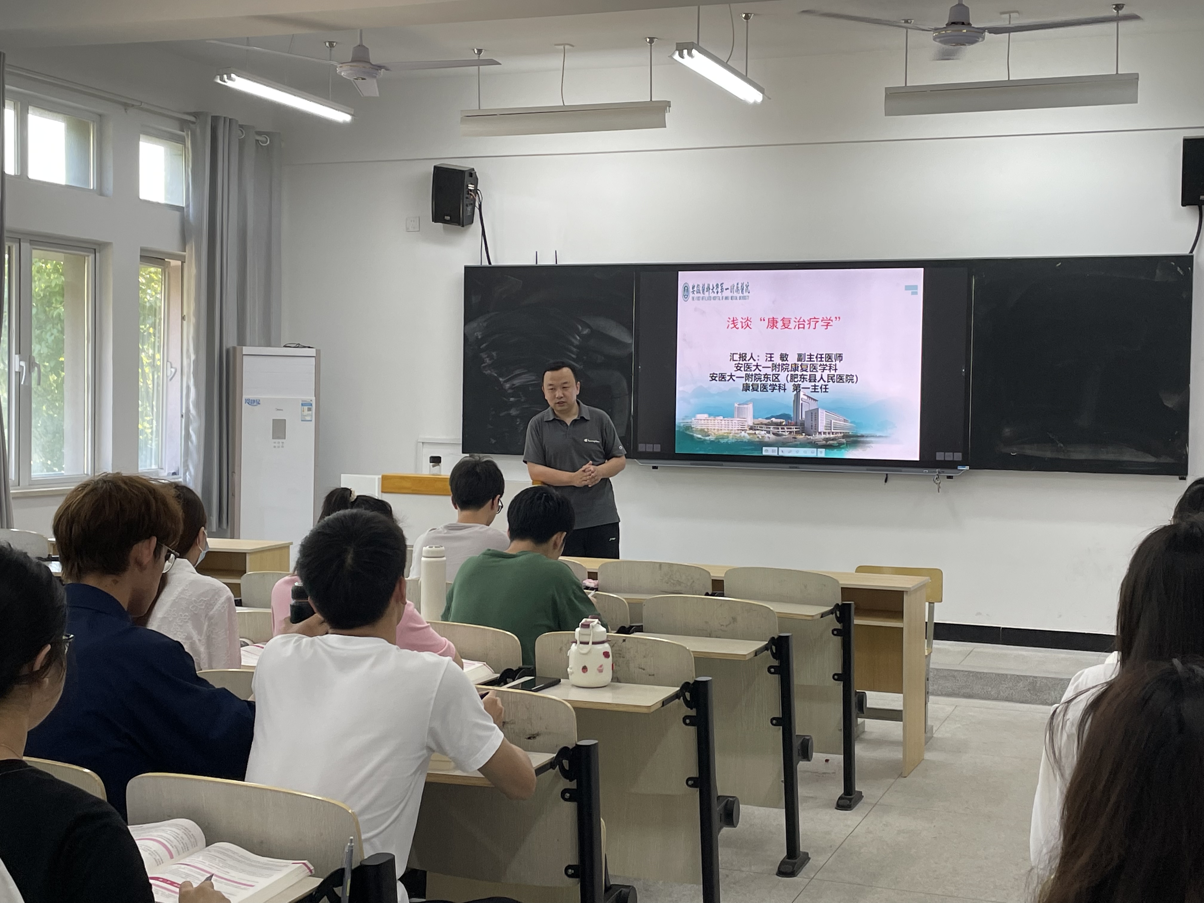 为坚定学生的专业信念,让康复治疗学专升本专业的学生了解康复、爱上康复,2023年5月26日医学院邀请安徽医科大学第一附属医院康复医学科汪敏主任到校,做“浅谈康复治疗学”的讲座。