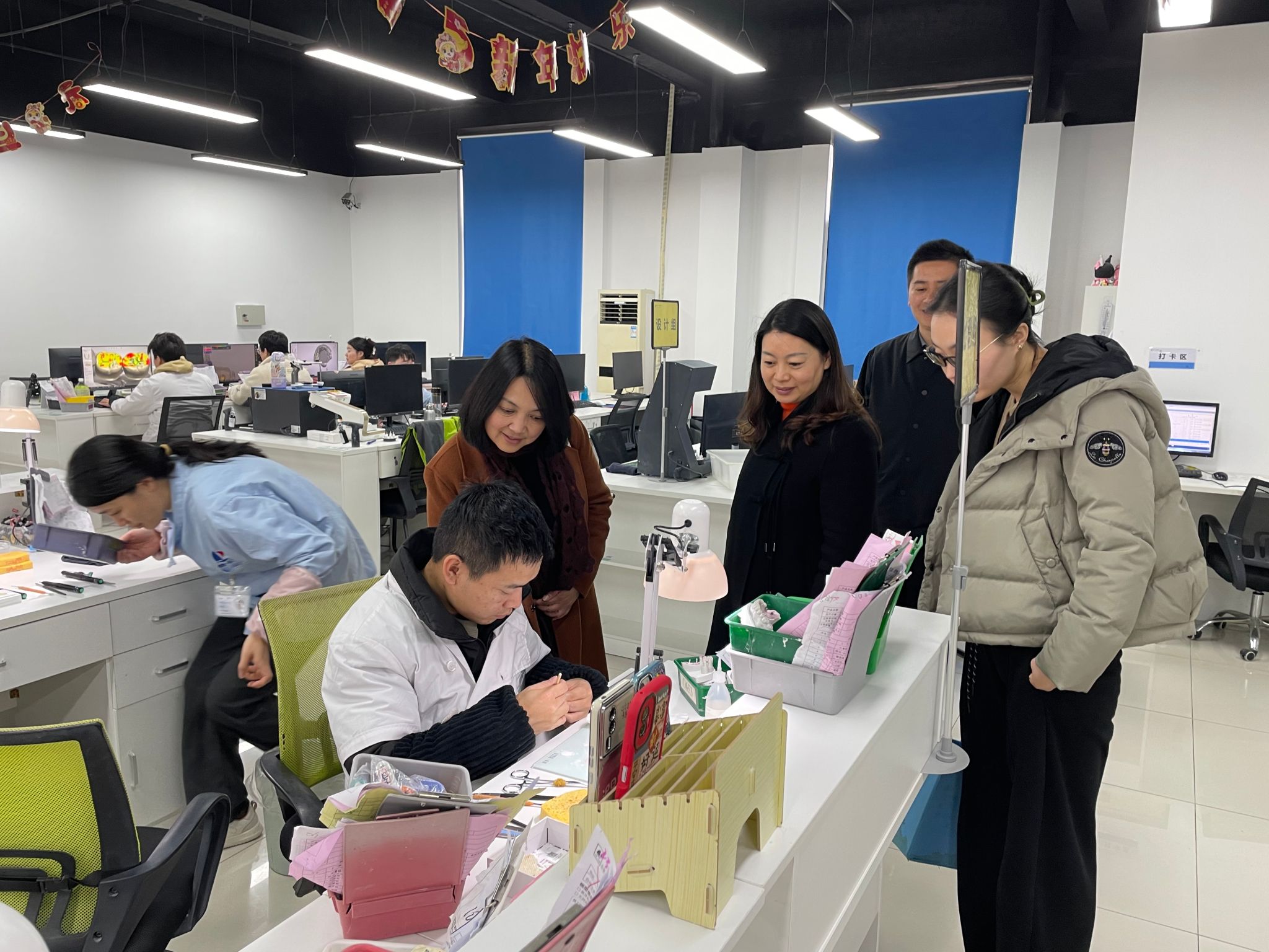 抵达实习企业园区后,工作人员向走访队伍一行介绍了企业的概况,并深入园区内部,实地参观实习生车间,了解了义齿制作生产的全流程。
