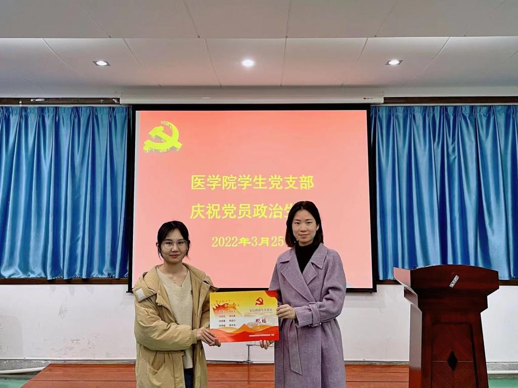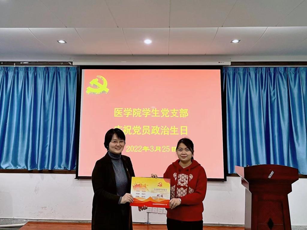 医学院总支副书记吴鸿玲、学生支部书记陈梦颁发生日贺卡,送上党组织的温暖与祝福。