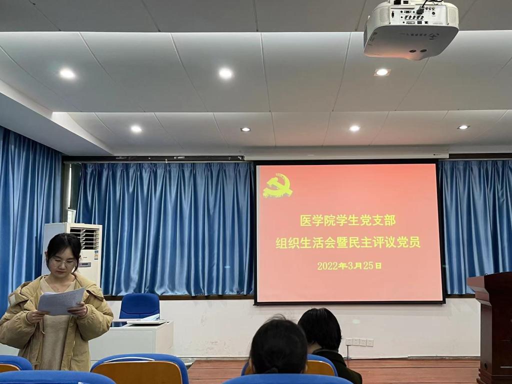 根据校党委要求,3月25日,医学院学生党支部在外科手术观摩室召开2021年度组织生活会,全体党员参加,会议由医学院学生支部书记陈梦主持。