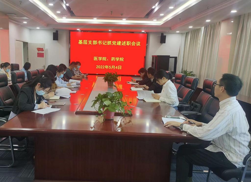 为进一步提升基层党建工作水平,推动基层党组织建设全面进步,2022年5月4日,医学院、药学院在图书馆六楼会议室召开基层支部书记抓党建述职会议。会议由医学院党总支书记刘燕主持,校党委委员、药学院书记刘毅,医学院、药学院党总支全体班子成员参加,校组织部副部长曹承娇到会指导。