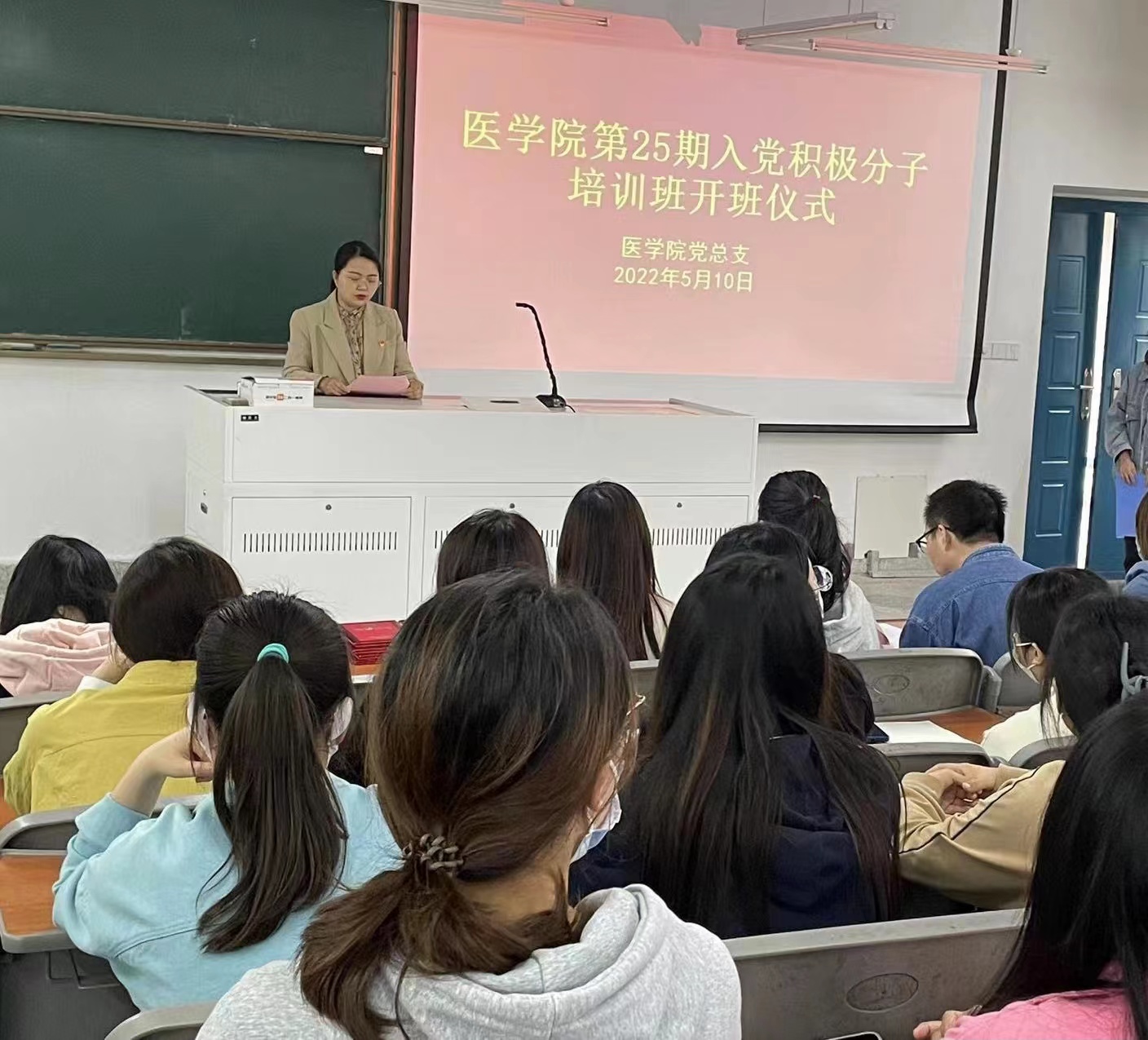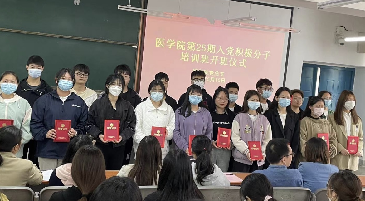 为深入学习贯彻习近平新时代中国特色社会主义思想,贯彻落实《中国共产党发展党员工作细则》,按照校党委《关于举办第25期入党积极分子培训班的通知》要求,5月10日,医学院举行第25期入党积极分子培训班开班仪式。医学院党总支副书记吴鸿玲、学生支部书记陈梦、学生支部全体支委以及培训班全体学员参加本次开班仪式。