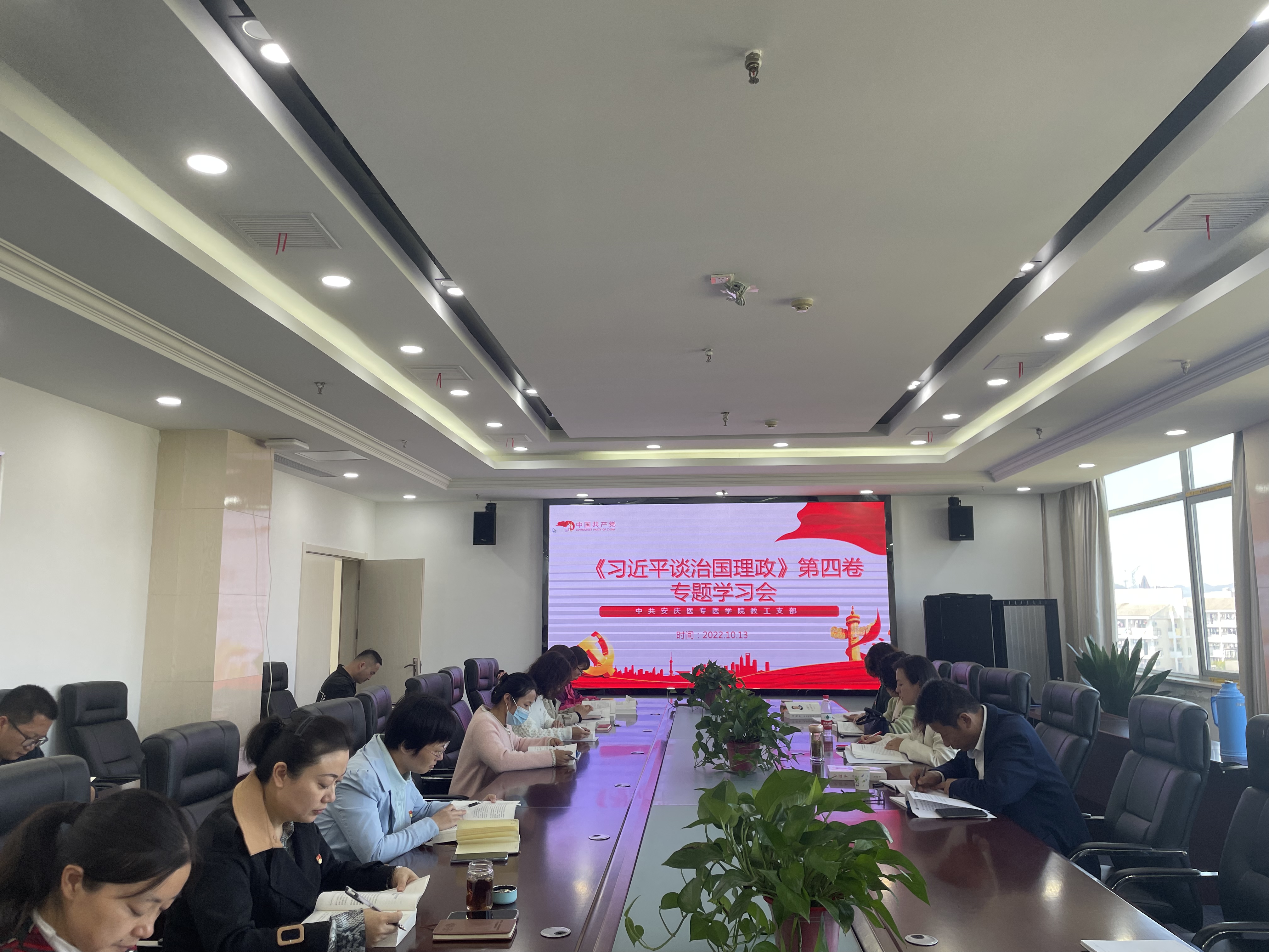 10月13日中午,医学院教工支部在图书馆六楼会议室召开《习近平谈治国理政》第四卷专题学习会,校长姚文兵以普通党员身份参加,教工支部全体党员老师参加,会议由教工支部书记主持。