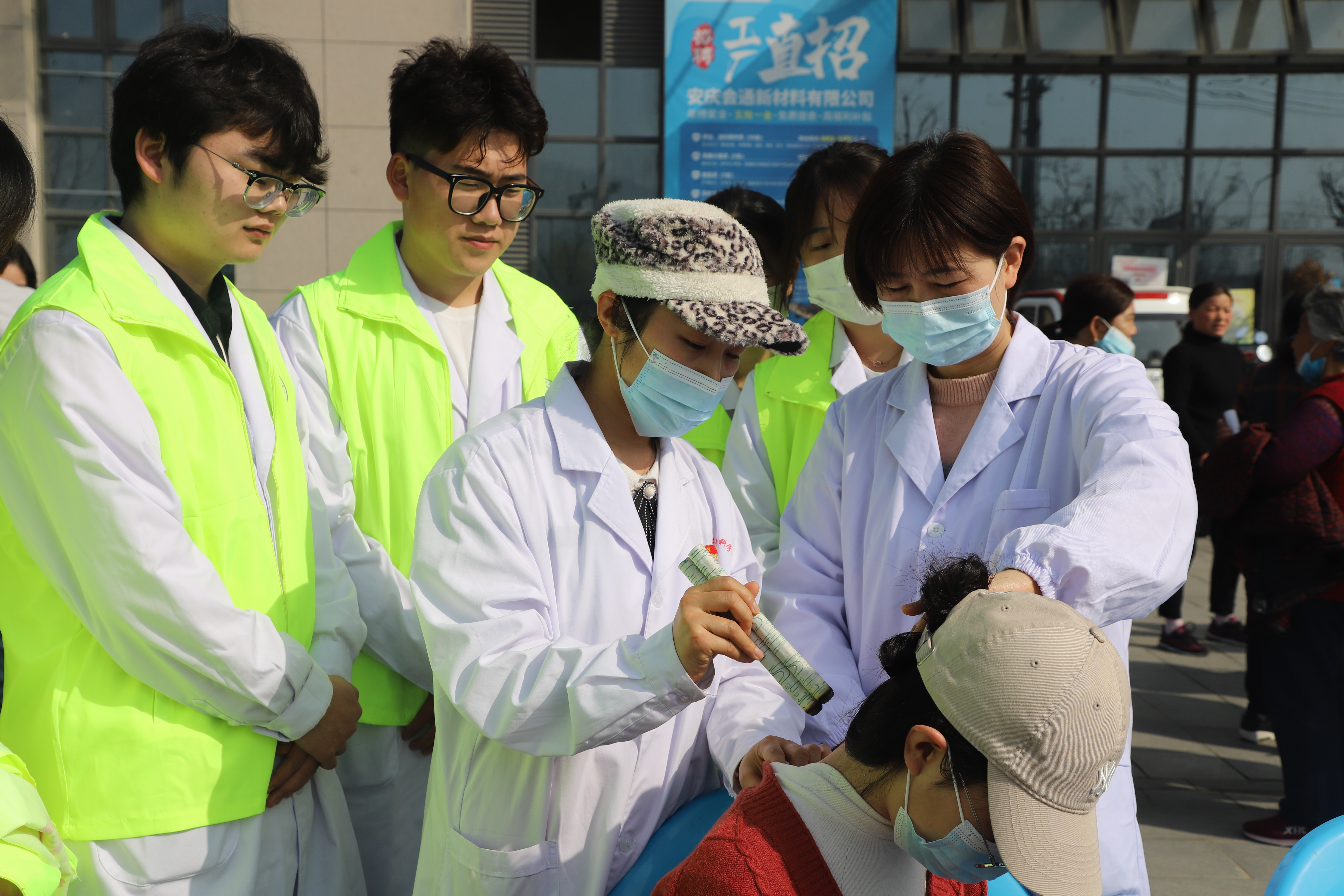 义诊活动现场,由医学专业党员教师组成的志愿服务队员们设内科、外科、妇科、儿科、口腔科、康复科等多个问诊台,为居民量血压、康复推拿、艾灸等,开展健康咨询,普及内外妇儿及各种慢性病防治知识,宣传健康生活习惯。学生志愿者们向社区居民发放宣传单页,围绕春季常见流行性疾病的传播途径、主要症状、易感人群以及预防措施等知识,向社区群众进行了全面细致的讲解。