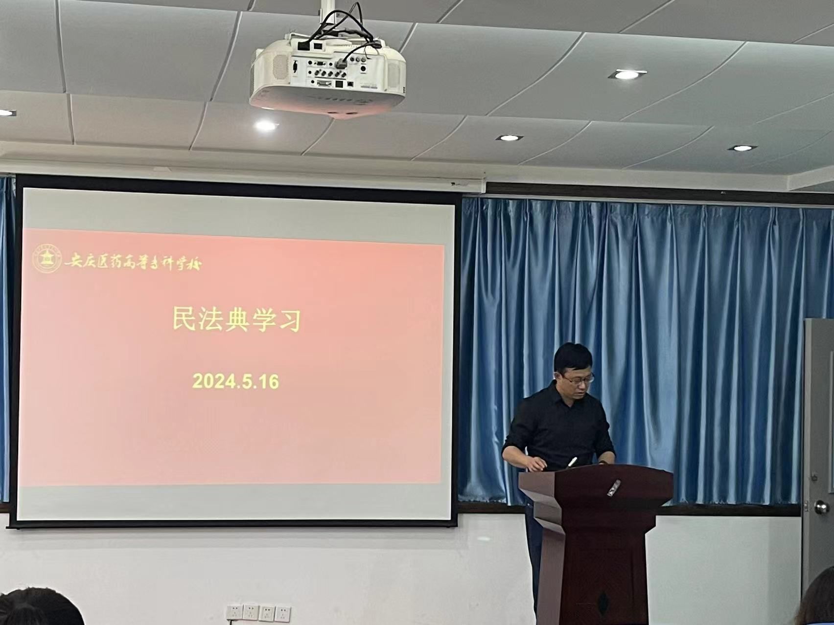 为深入学习贯彻习近平总书记关于加强《中华人民共和国民法典》学习宣传的重要指示精神,全面提升医学院全体教职工的法治观念。5月16日,医学院在外科手术观摩室组织开展民法典学习,会议由医学院党总支书记、院长刘燕主持,医学院全体教职工参加。