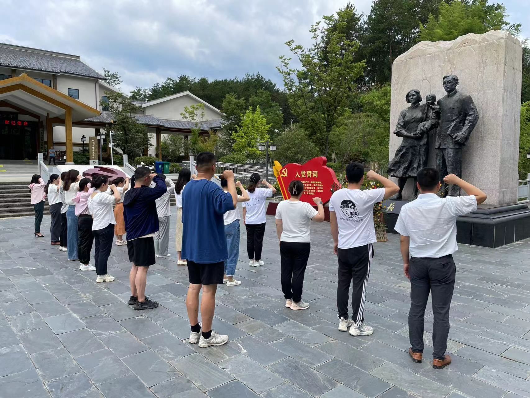 党总支还在故居前广场举行了庄严的党员政治生日仪式,在鲜艳的党旗下,全体党员面向党旗,高举右拳,重温入党誓词,铿锵有力的誓言在广场上空回荡,表达了党员们对党的忠诚和对事业的执着追求,也使党员们的党性观念得到了进一步升华,更加坚定了为共产主义事业奋斗终生的信念。