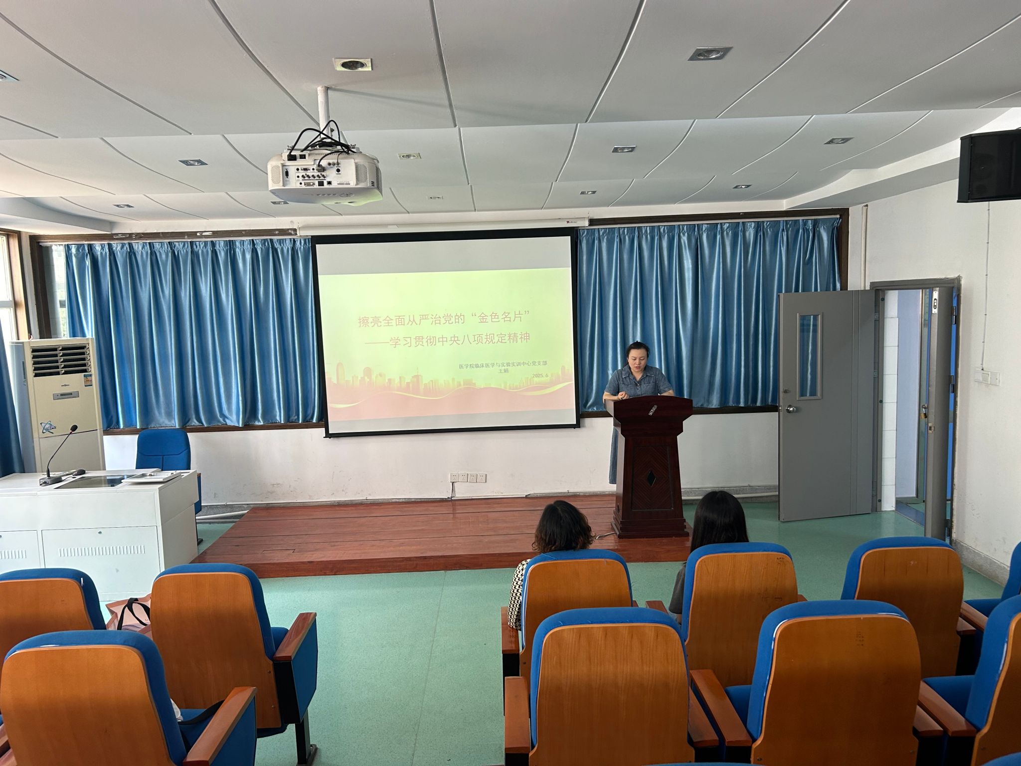 为深入贯彻落实党中央关于加强作风建设的决策部署,根据《关于在全党开展深入贯彻中央八项规定精神学习教育的通知》要求,医学院党总支临床医学和实验实训中心党支部积极响应,于2025年6月3日组织开展了一场意义深刻的党课学习活动,由支部书记王娟为全体党员上了一堂生动且具有教育意义的党课,旨在推动中央八项规定精神在基层党组织中落地生根,强化党员干部的纪律意识和作风建设。