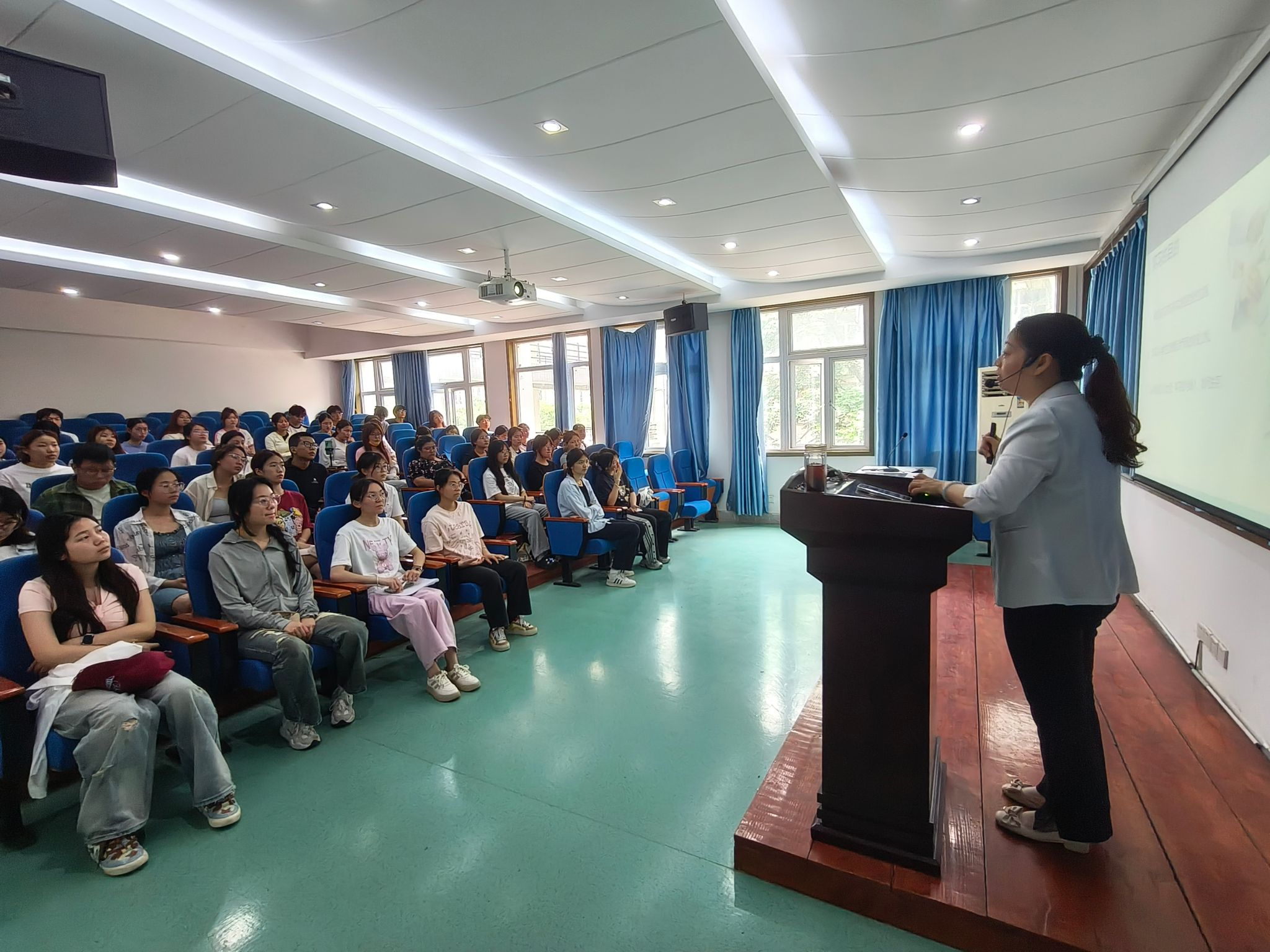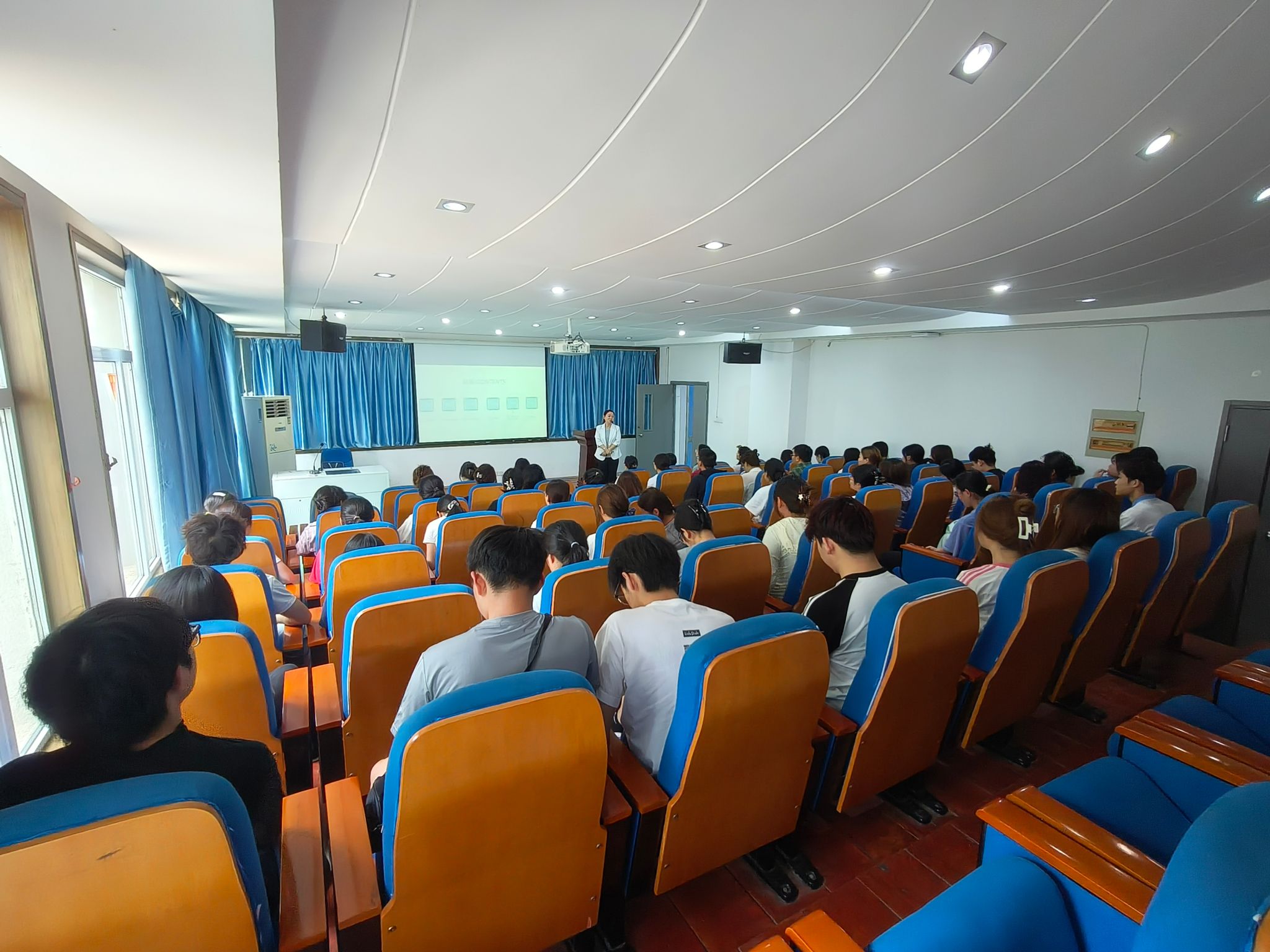 2025年6月3日,医学院党总支医学技术党支部书记刘燕在外科手术观摩室为23级康复治疗技术专业学生开展实习前教育,为学生答疑解惑。刘燕从行业最新技术、实习注意事项及择业就业方向等方面,阐述了实习的重要性,重点强调实习期间遵守学校和医院规章制度的重要性,并提醒同学们要格外重视在实习单位的表现,希望大家虚心受教,韬光养晦,努力成长,积极蜕变,早日成为一名合格的治疗师。