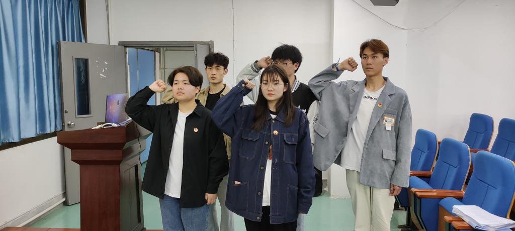 随后参加本次活动的新团员们在优秀共青团员汪青刘同学带领下进行了庄严宣誓,“我志愿加入中国共产主义青年团,坚决拥护中国共产党的领导,遵守党的章程……吃苦在前,享受在后,为共产主义事业而奋斗”,宣誓声在教室内回荡,大家坚定的目光和铮铮的誓言展现出共青团员积极向上的活力和朝气。