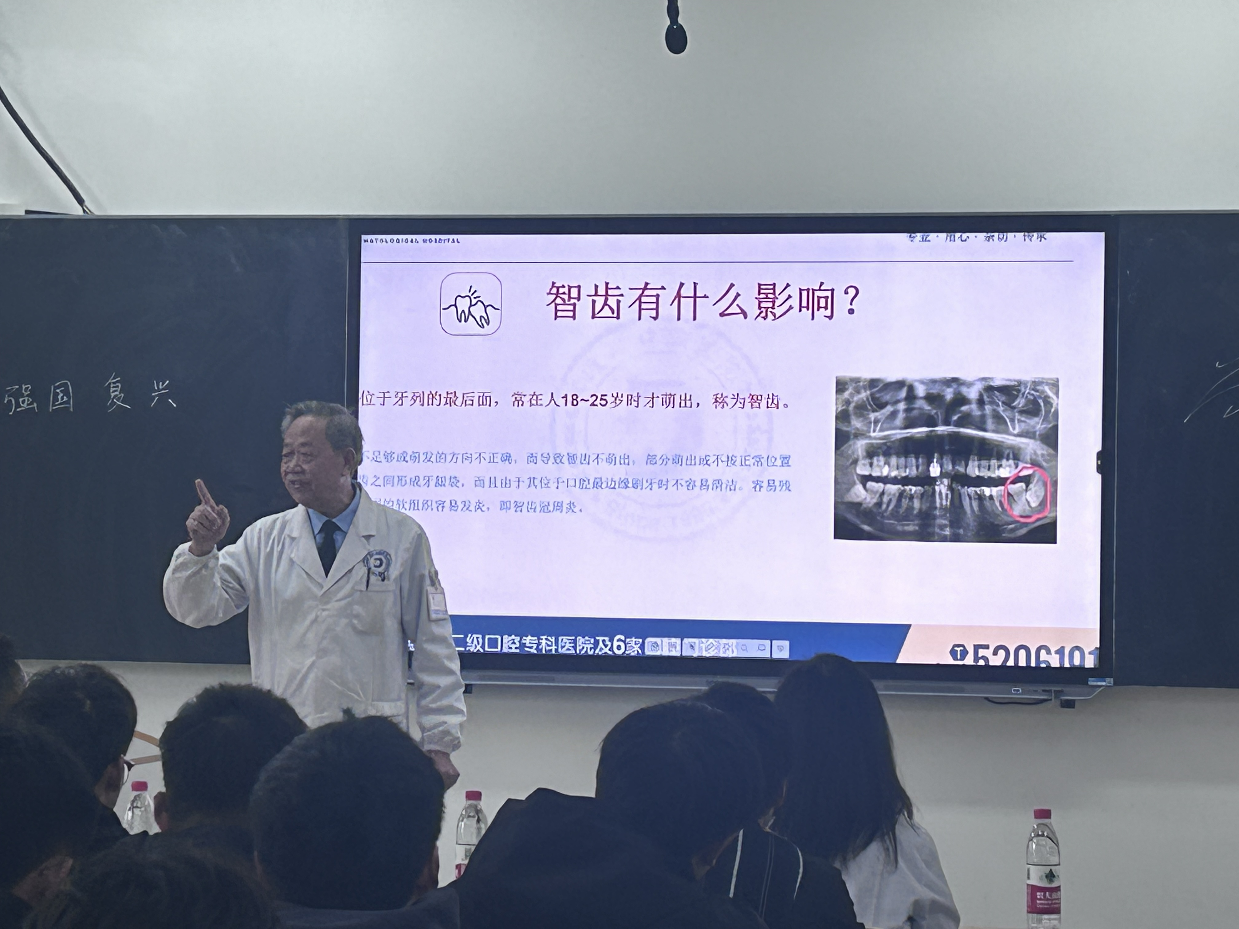 安庆市渡江口腔医院特邀医生李永大现场为口腔医学技术、临床医学等专业100多余名学生宣传口腔健康重要性,普及口腔卫生知识和口腔保健知识等方面知识。李永大还鼓励现场的学生们作为医学专业的学生,在日常更加注重个人口腔卫生,并积极向身边的人宣传口腔健康知识,做好口腔健康管理。