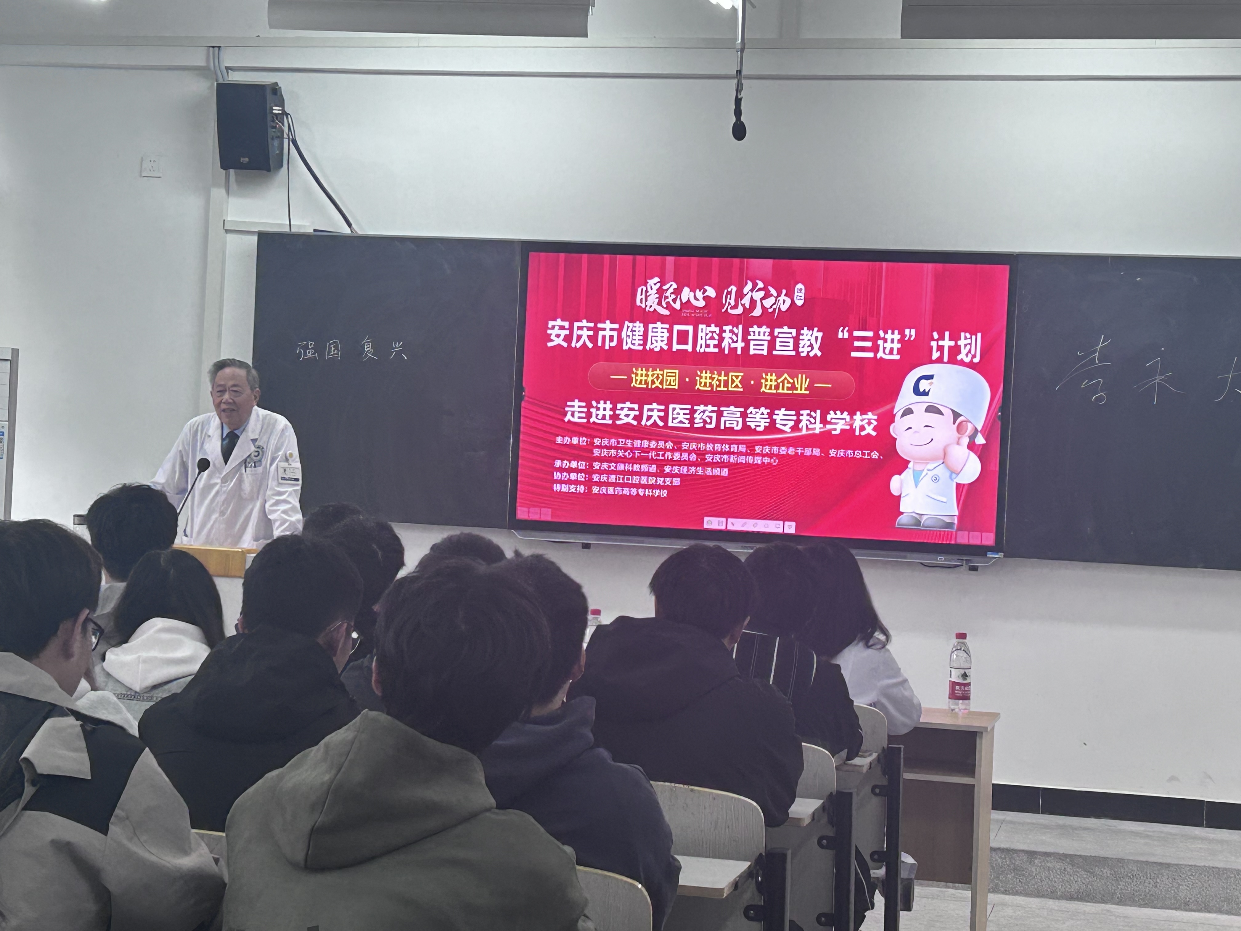 健康口腔、科普先行。11月8日,在校学生处、医学院党总支的大力支持下,“青医”口腔健康宣讲团联合安庆市渡江口腔医院,开展规范化口腔健康教育推广和口腔健康知识讲座进校园系列活动。