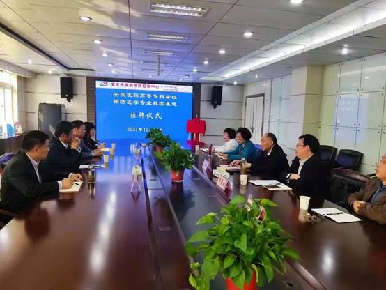 2021年10月29日上午,安庆医药高等专科学校与市疾控中心预防医学专业教学基地挂牌仪式行在市疾控中心举行。安庆市卫健委主任潘结标,副主任李贤相,安庆市疾控中心主任伊发英,副主任陈述平、叶和义,校党委副书记、校长姚文兵,副校长毛以成,临床医学系党总支书记、主任刘燕,医学基础部主任、预防医学专业负责人李济平参加。