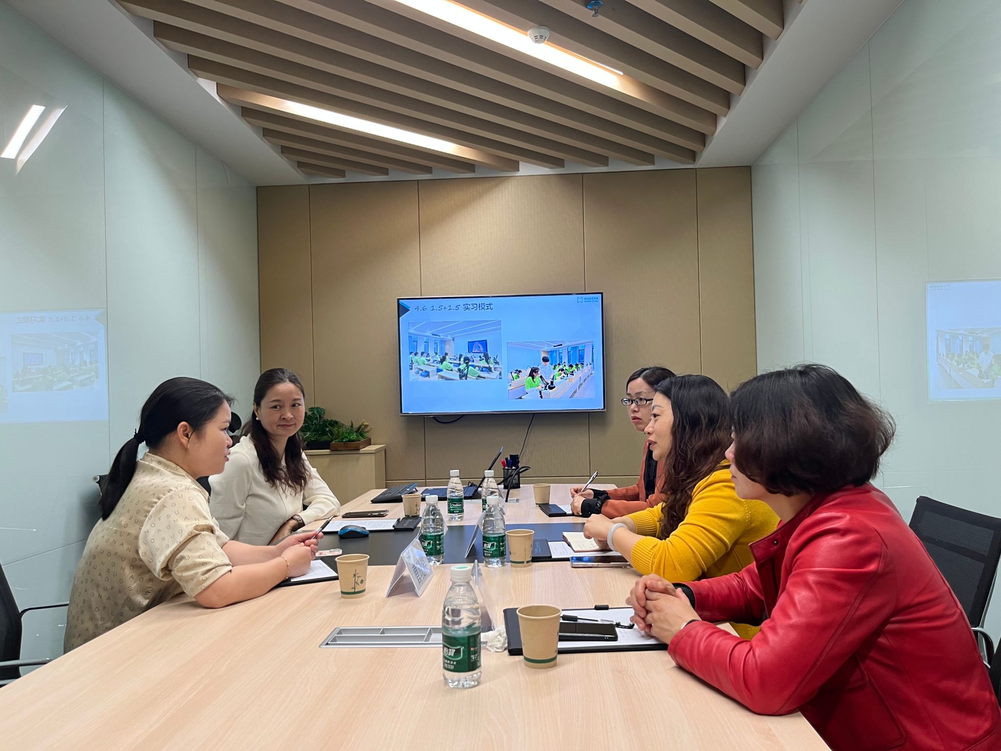 现代牙科技术(东莞)有限公司培训学校校长金莉对到访表示热烈欢迎并介绍集团发展和人才培养模式,校务主管曹晓婷对实习生管理和校企合作模式进行了详细的介绍。