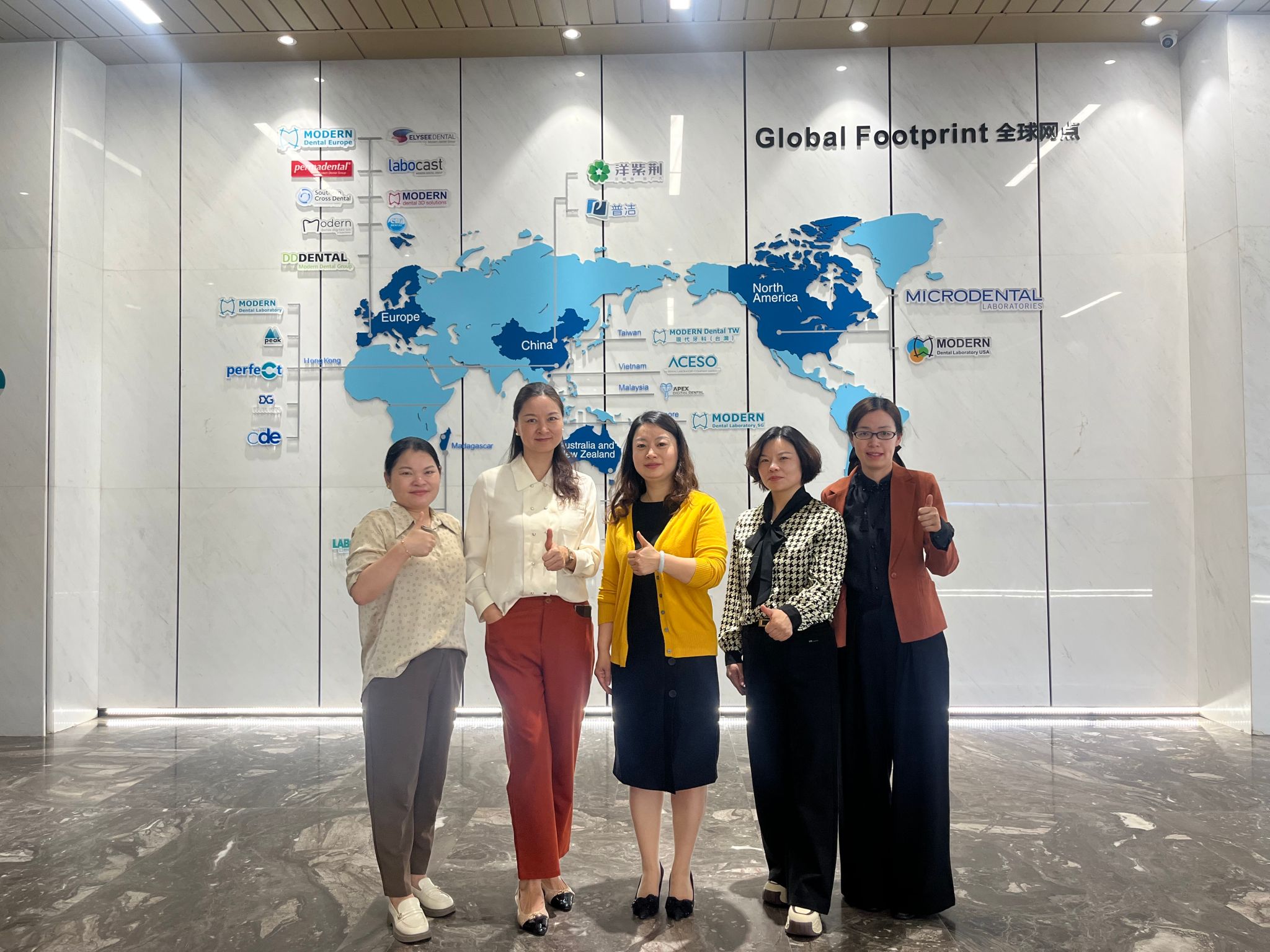 为了进一步拓展实习就业岗位,推动校企深度合作,加强产教融合,2024年3月28日医学院院长刘燕一行3人赴现代牙科技术(东莞)有限公司开展访企拓岗交流。