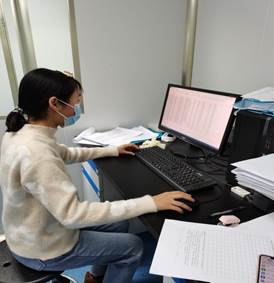 工作内容:周美茹同学志愿工作的地方是当地县疾控中心的PCR室,工作间虽不大,却是防疫工作中不可缺少的战场。她帮助医务人员进行信息的统计与核对,为他们后期信息上传节约时间,提高效率。在工作之余,周美茹同学还会去操作间,熟悉相关仪器操作,这些对她的专业学习有着很大的帮助。