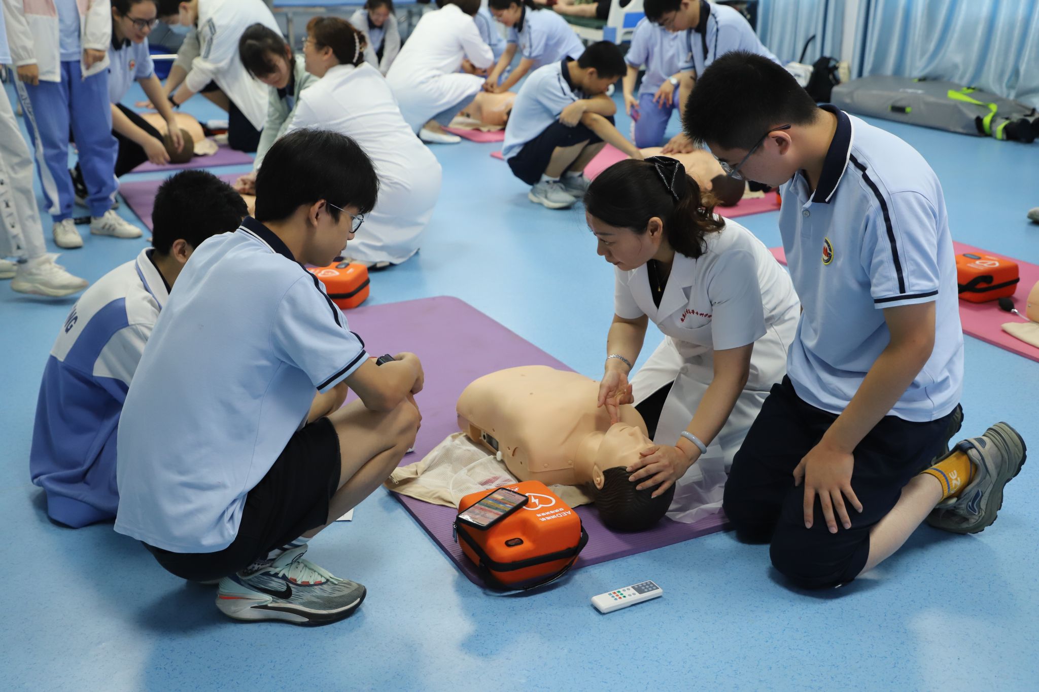 2024年7月15日上午,安庆一中“生命科学苑”社团成员及带教老师一行20人到校开展研学活动。为普及和加深学生对日常急救知识和技能的了解,医学院在临床技能实训中心为来访师生进行了一次“心肺复苏术”现场模拟教学课。