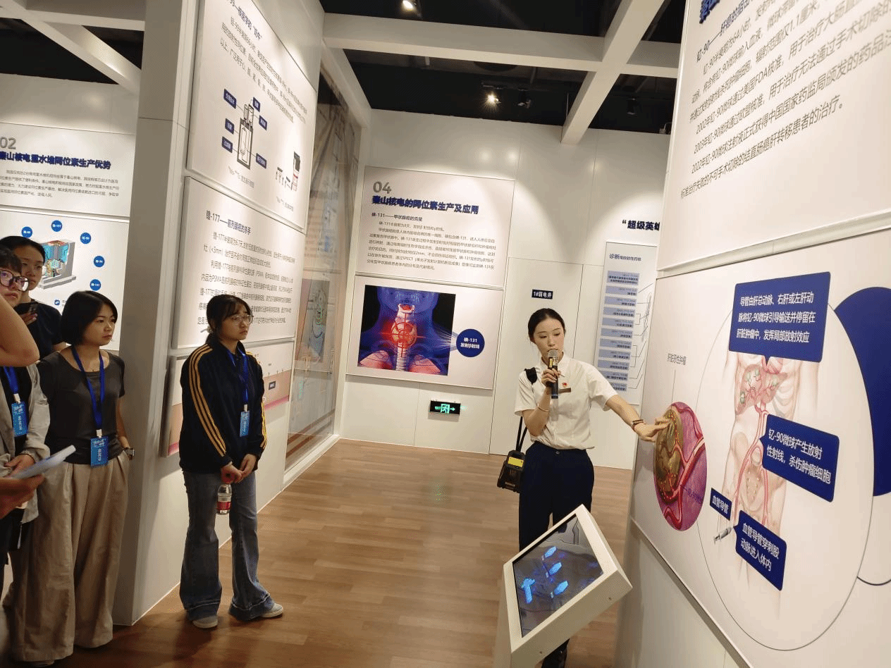 为更好地了解我国核能发展历程与发展现状,参会团队赴中国核电科技馆、秦山核电厂进行参观。在科技馆的展厅里,“中国大陆第一度核电(1991年12月15日0时15分)”的纪念钟与历史影像,让师生们直观感受到中国核电人在“两弹一星”精神指引下,实现技术突破、保障能源安全的使命担当;在核电站控制中心,成员们近距离观察复杂精密的操作设备,聆听工作人员讲解核电安全运行与“两弹一星”精神的传承脉络;在秦山核电三期的观景台眺望核基地与杭州湾交相辉映的画面,深刻体会到“责任、安全、创新、协同”的核电精神与“两弹一星”精神的一脉相承,与“国之重器”的硬核实力。