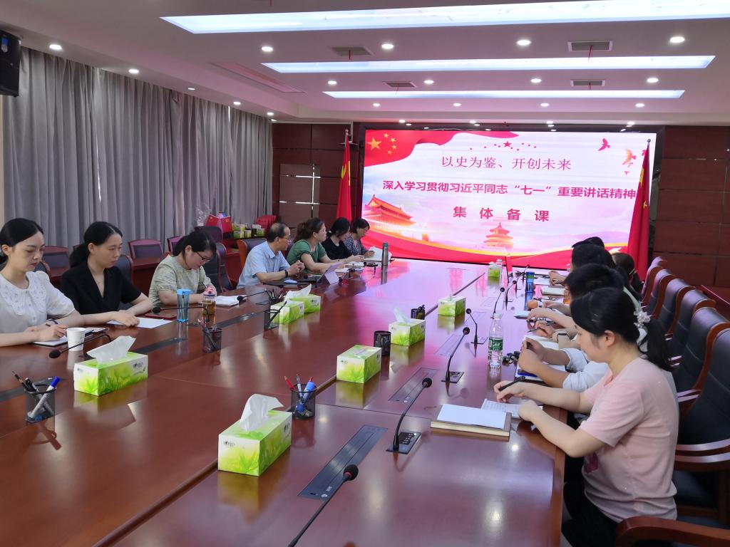 2021年9月1日中午12:00,马克思主义学院在行政楼三楼大会议室开展深入学习贯彻习近平总书记“七一”重要讲话精神集体备课会。本次备课会由马克思主义学院院长陆胜利主持,形势政策教研室主任杨萍主讲,全体思政课老师共同参与。