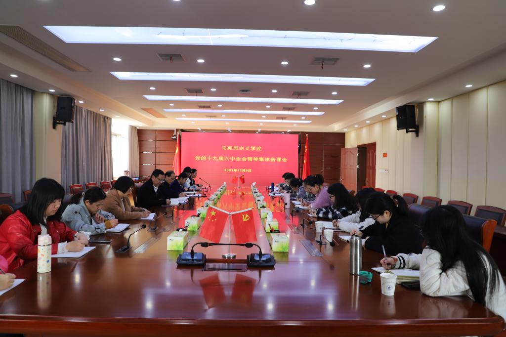 为了深入学习贯彻党的十九届六中全会精神,准确把握全会的精神实质,并将全会精神融入思政课的教学工作之中,2021年12月9日中午12:30,马克思主义学院在行政楼三楼大会议室举行了“学习党的十九届六中全会精神”集体备课会,此次集体备课会由院长陆胜利同志主持,“概论”教研室主任许红菊老师主讲,校党委副书记张仕庆同志列席指导。马克思主义学院全体教师参加备课会。