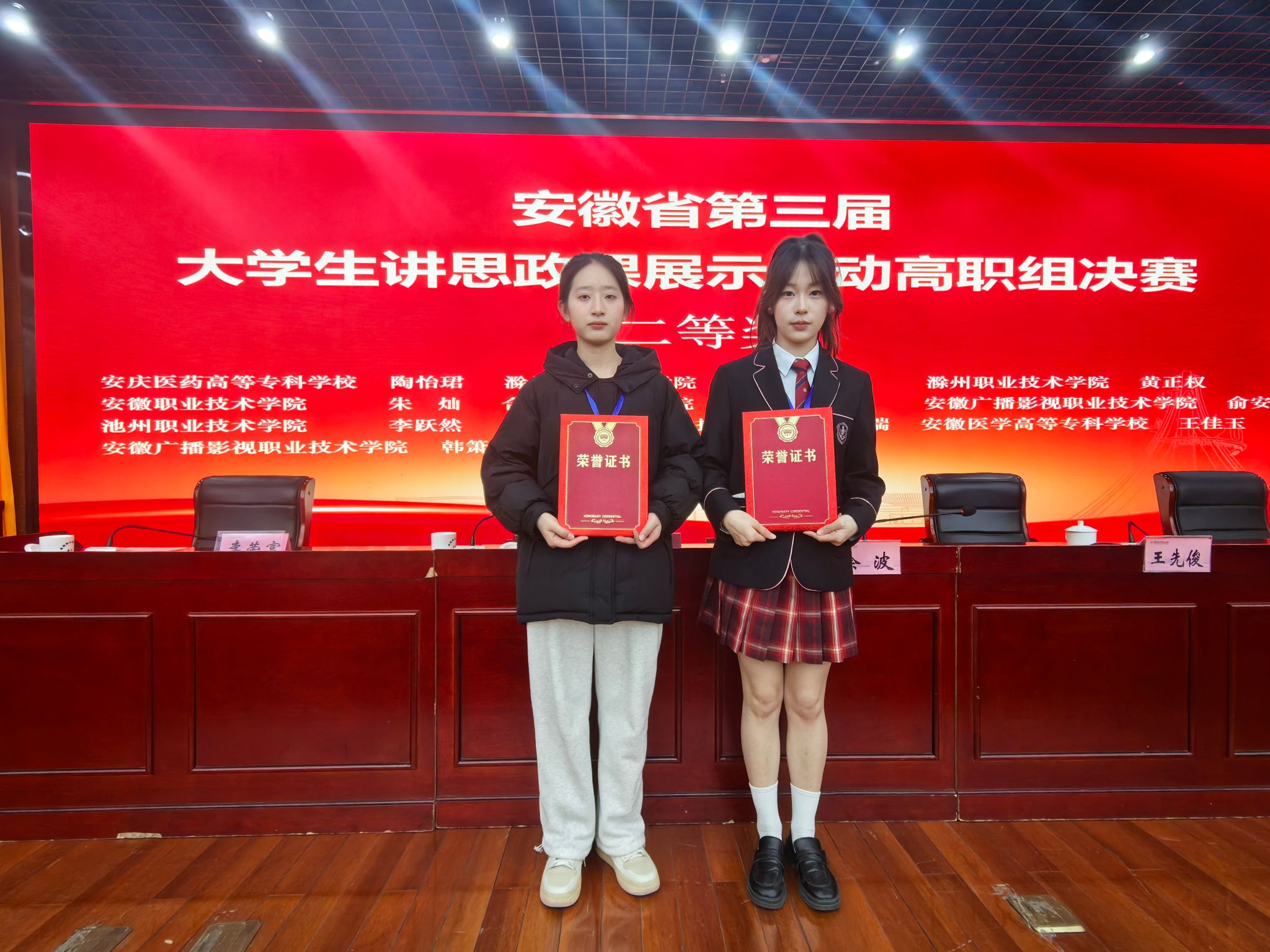 2024年12月27日,由中共安徽省委教育工委主办的安徽省第三届大学生讲思政课展示活动高职组决赛在合肥圆满落幕。经过激烈角逐,我校学子夺得决赛二等奖。
