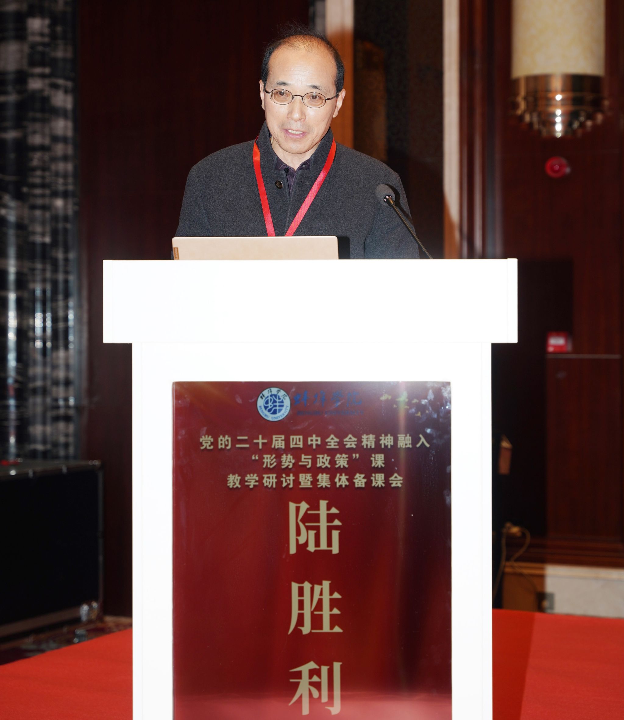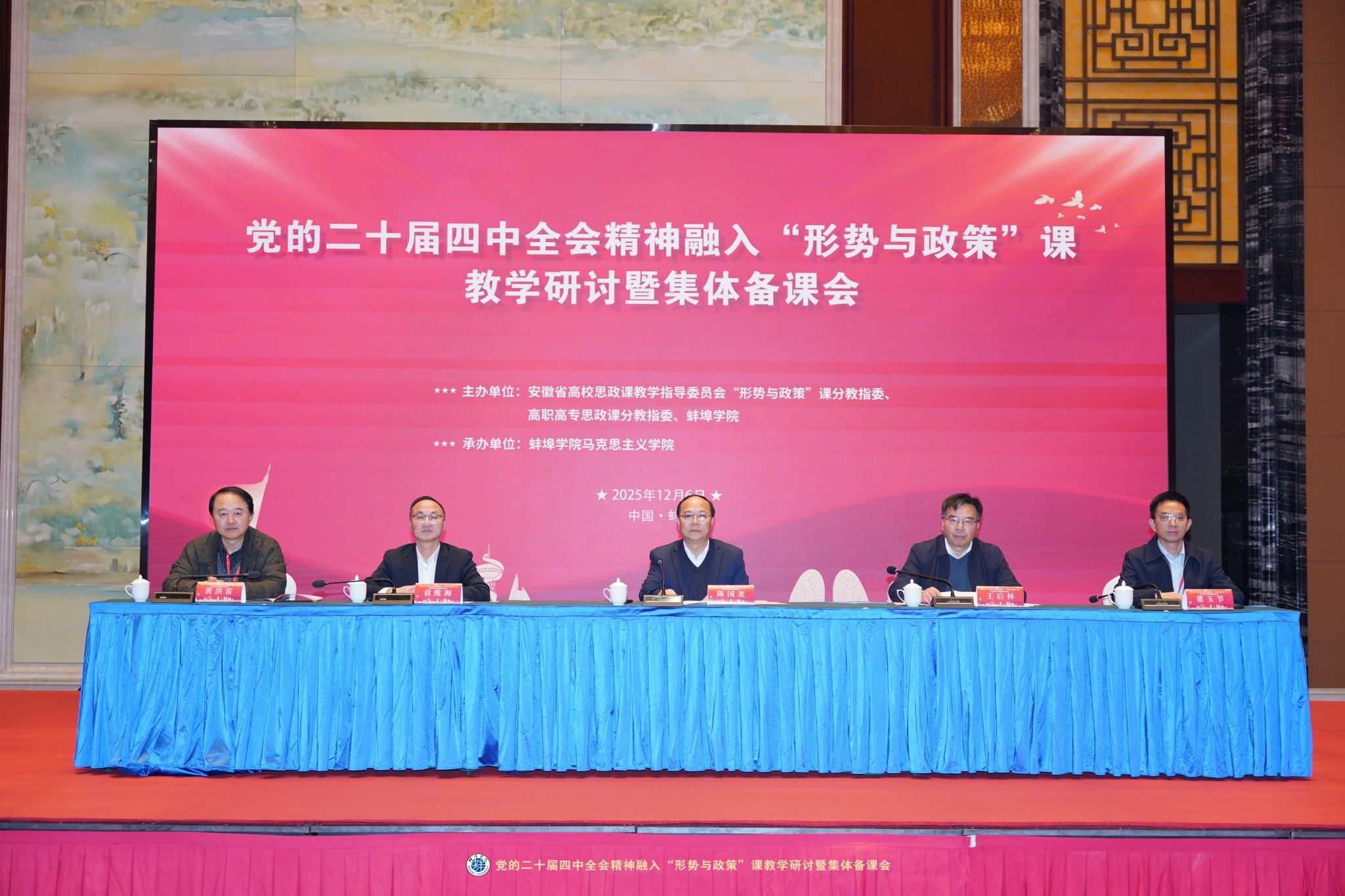 12月6日,党的二十届四中全会精神融入“形势与政策”课教学研讨暨集体备课会在蚌埠学院举行。来自全省各高校的思政课骨干教师齐聚一堂,围绕党的二十届四中全会精神如何更好融入“形势与政策”课程、“形势与政策”课教学重点难点、教学方法创新、教学资源整合等内容展开深入交流研讨。省委教育工委思政处处长王后林等领导出席会议并讲话。我校马克思主义学院陆胜利、张永娇、朱楠昊三位老师参加了会议。