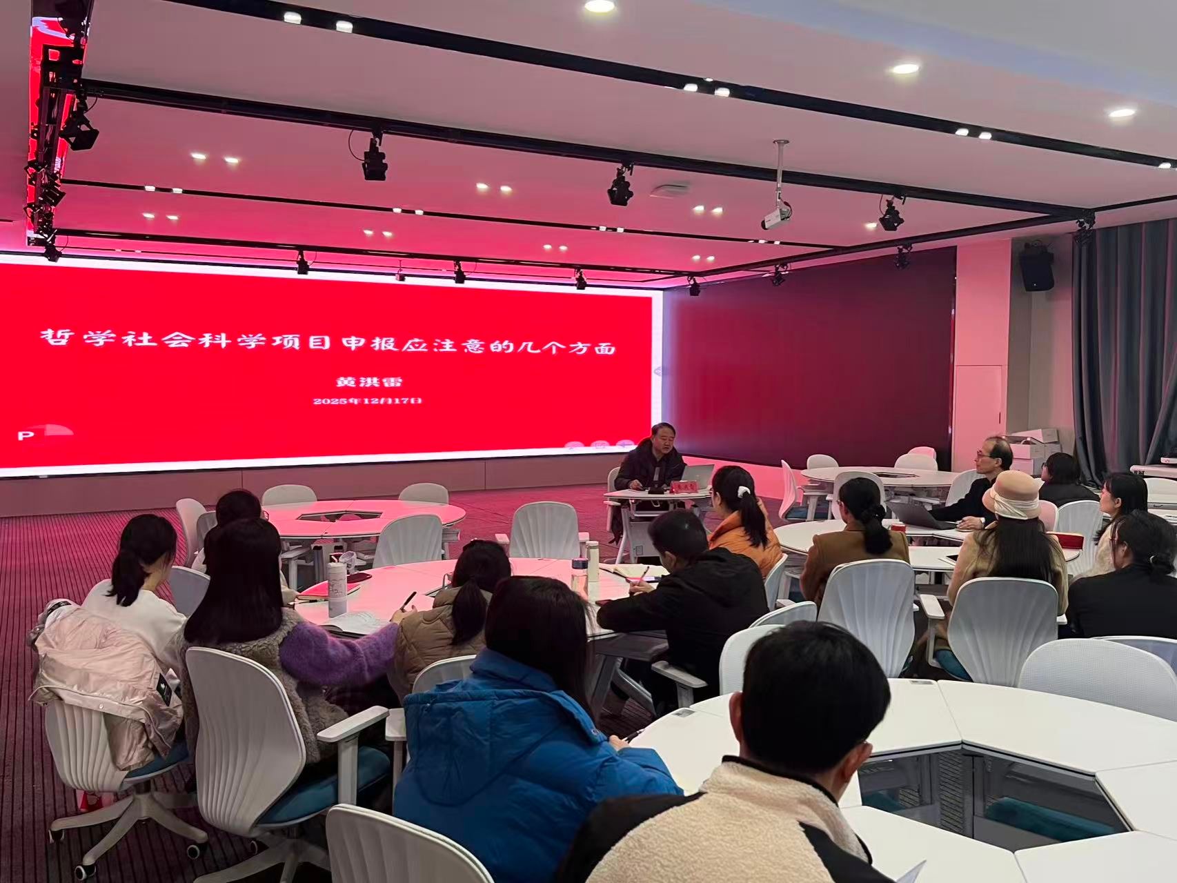 12月17日下午,安徽农业大学马克思主义学院黄洪雷教授应邀来我院举办哲学社会科学项目申报专题讲座,并与学院教师进行交流。马克思主义学院院长陆胜利主持活动,学院全体教师参加活动。