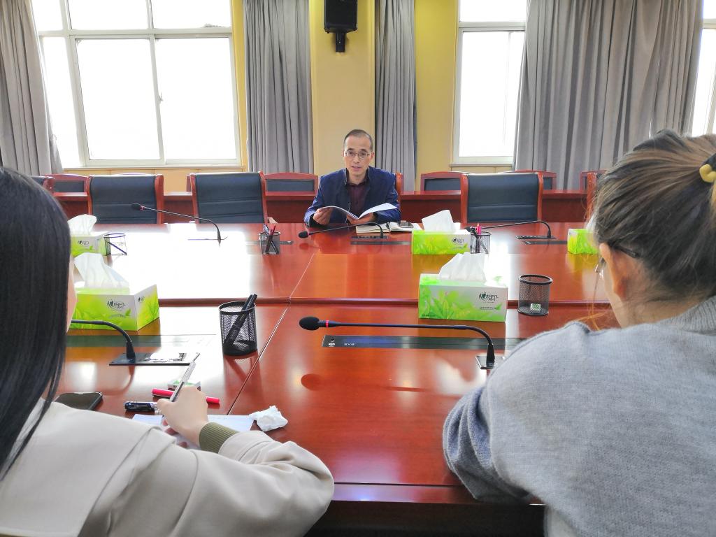20211015日中午12:30,马克思主义学院直属党支部在行政楼三楼大会议室召开支部党员大会。会议由支部书记陆胜利主持,马克思主义学院全体党员参加了大会。