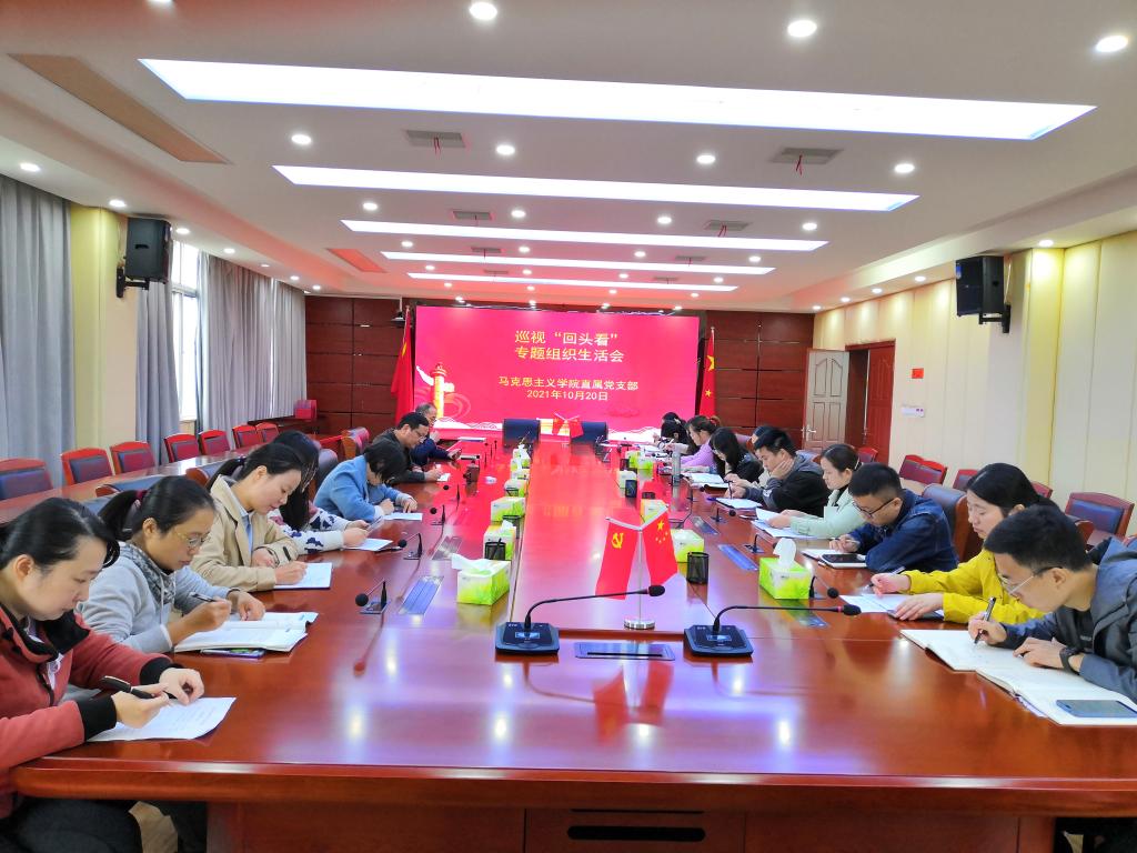 根据学校党委关于召开巡视“回头看”整改专题组织生活会工作要求,2021年10月20日中午12:30,马克思主义学院直属党支部在行政楼三楼大会议室召开巡视“回头看”专题组织生活会。会议由支部书记陆胜利主持,支部全体党员参加,校党委副书记张仕庆以普通党员身份参加此次组织生活会。