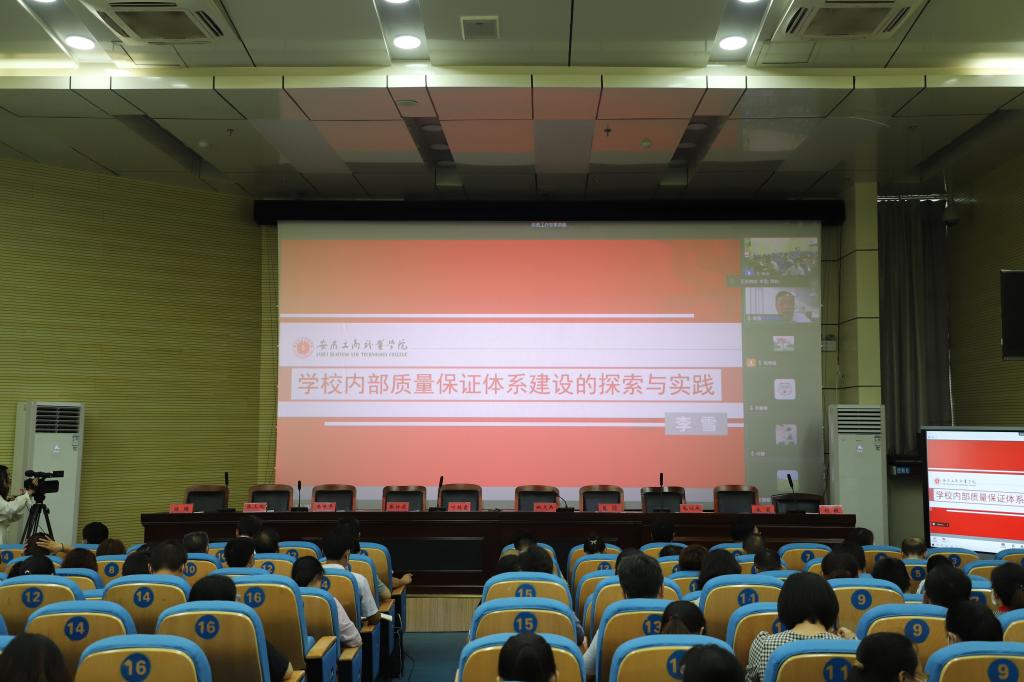 中国职业技术教育学会高职分会副会长、安徽工商职业学院院长李雪教授以《学校内部质量保证体系建设的探索与实践》为题作了首场报告。他从国家顶层设计、省级特色做法和学校诊改探索三个方面对教育部、省教育厅有关文件的精神内涵进行了深入解读,对全面推进学校诊改工作进行了针对性指导。