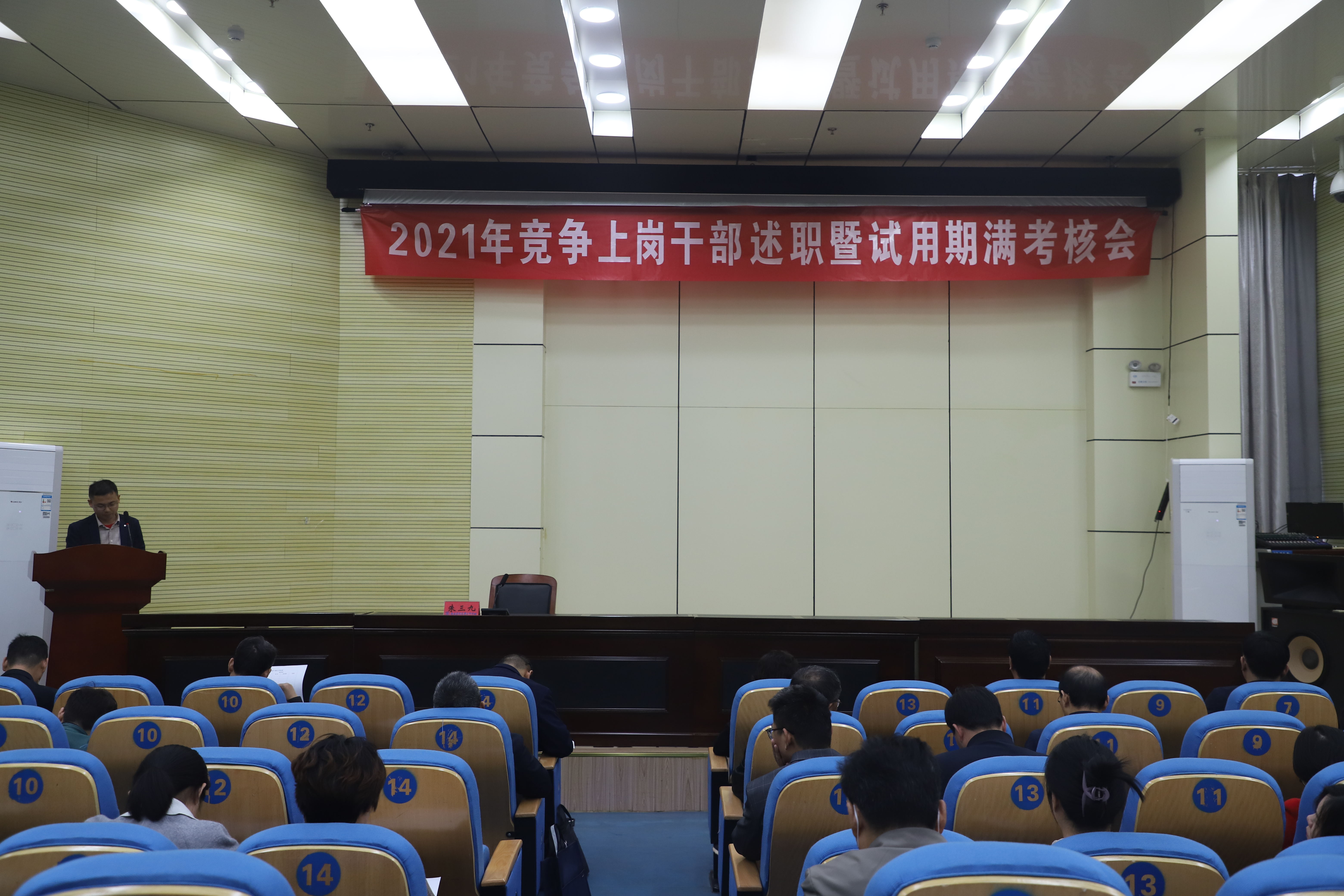 会议分为个人述职和民主测评两个阶段。2021年10月竞争上岗的相关23名二级机构副职依次结合岗位职责、完成工作任务等内容,围绕德、能、勤、绩、廉五个方面进行重点汇报,总结了任职以来的工作学习情况、存在不足和下一步努力方向等。随后全体与会人员以无记名方式填写了民主测评表。