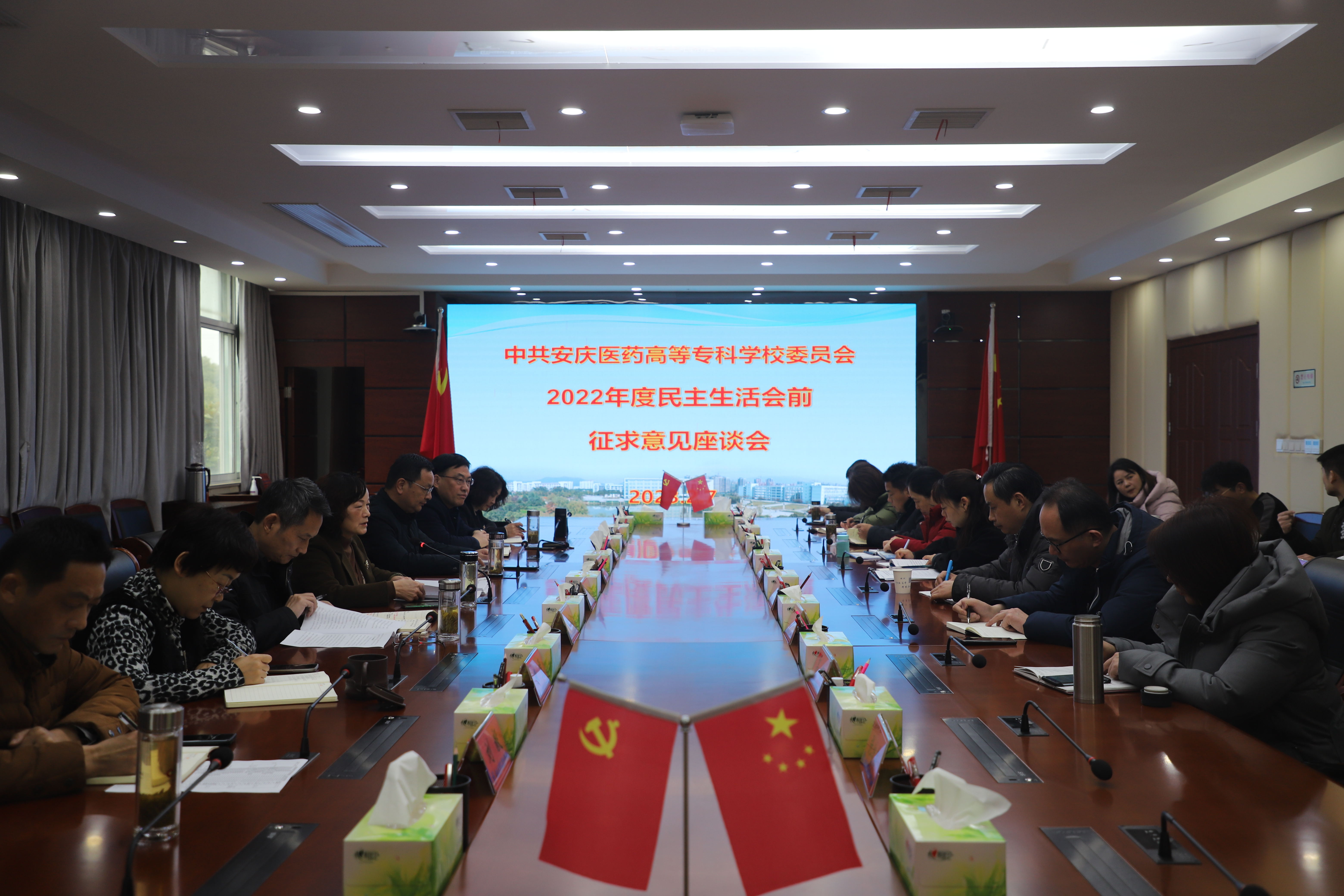2月7日,校党委书记叶林霞主持召开校党委2022年度民主生活会前征求意见座谈会,面对面征求学校各方面代表意见建议,为高质量开好民主生活会打下坚实基础。校党委副书记张仕庆、纪委书记陈燚,副校长朱庆丰,党委委员朱雯、陈琪、刘毅出席会议,校高层次人才代表、“两代表一委员”、民主党派代表及一线教职工代表参加了本次座谈会,相关职能处室工作人员列席会议。
