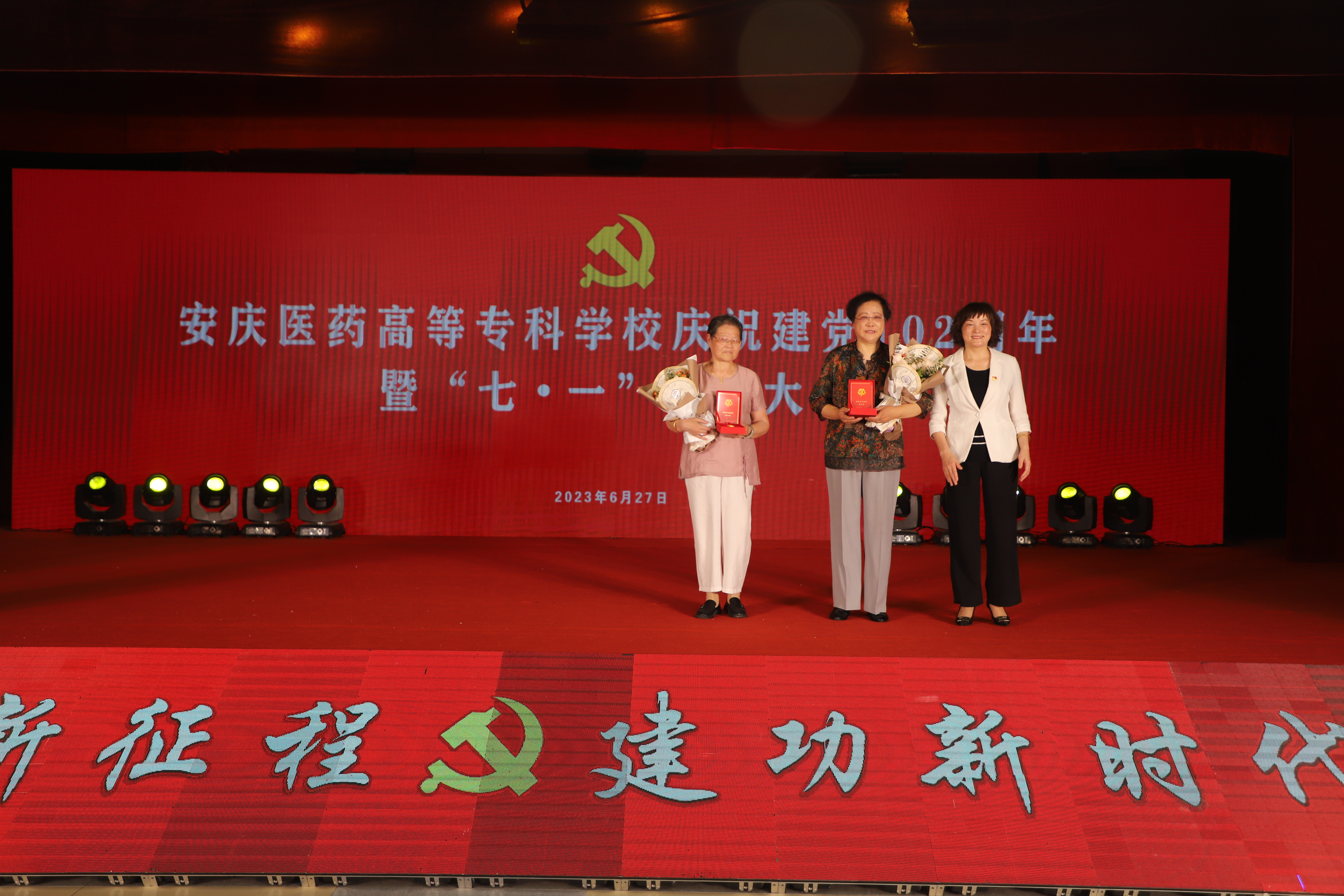 会上,叶林霞为“光荣在党50年”老党员曹艳平、严爱华颁发了纪念章,校党委班子成员为学校“两优一先”表彰对象和“七一”诵读比赛获奖队伍颁奖。