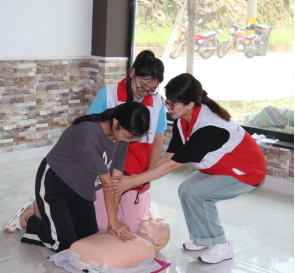 随行的师生志愿者们还为龙河村民作应急救护和肺结核防治等科普宣讲。