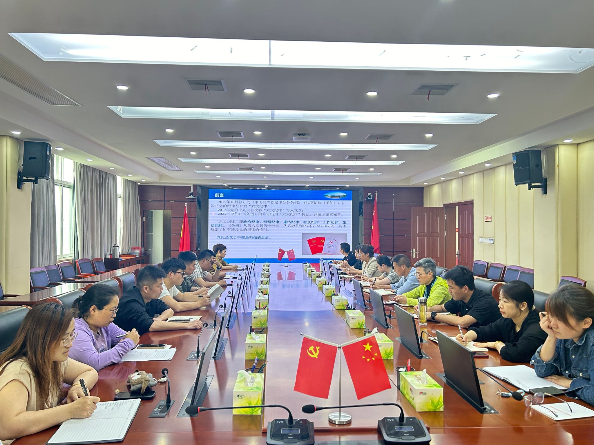 为进一步推动党纪学习教育走深走实,6月4日中午在行政楼三楼大会议室,机关党总支书记曹承娇以《恪守“六大纪律” 筑牢思想根基》为题讲授专题党课,机关总支及下辖各支部支委均参会学习。