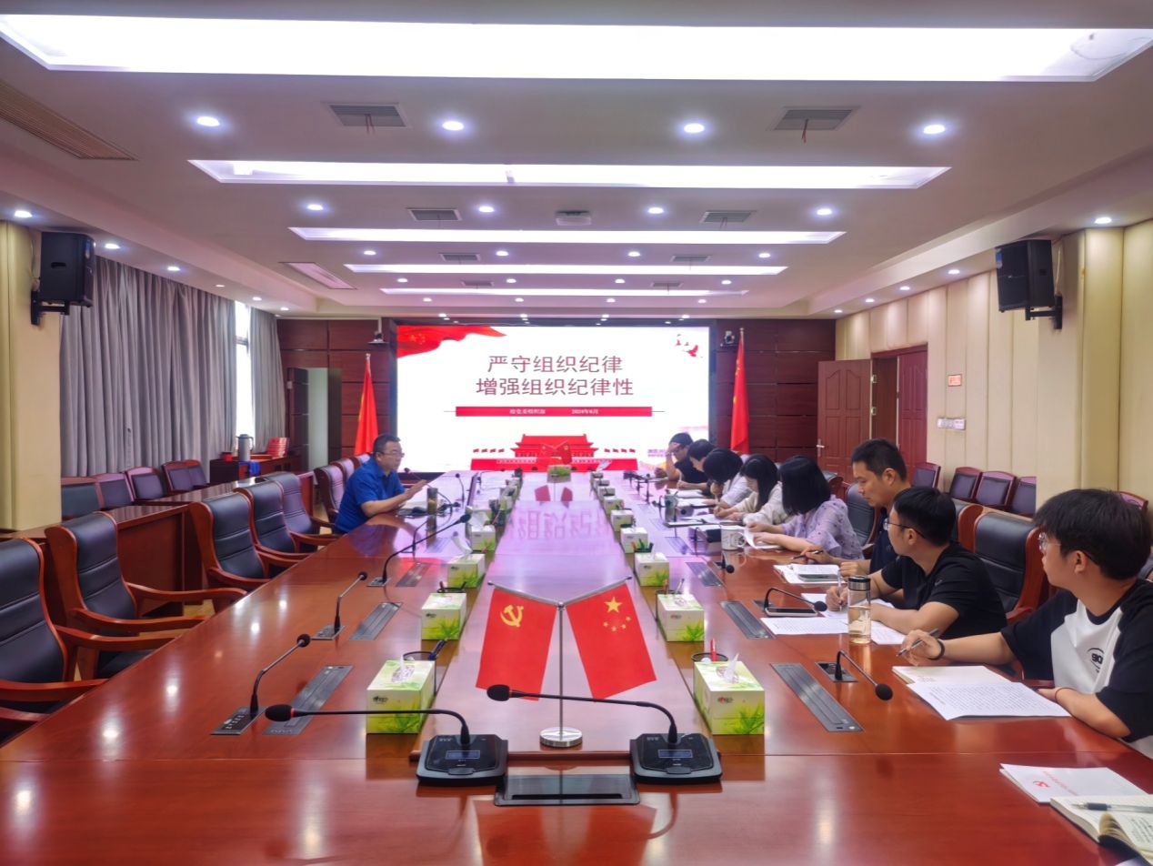 会议由支部书记刘家水主持,校党委委员、组织人事处处长、统战部部长朱三九以普通党员身份参加会议,并为全体党员讲《严守组织纪律 增强组织纪律性》专题党课。