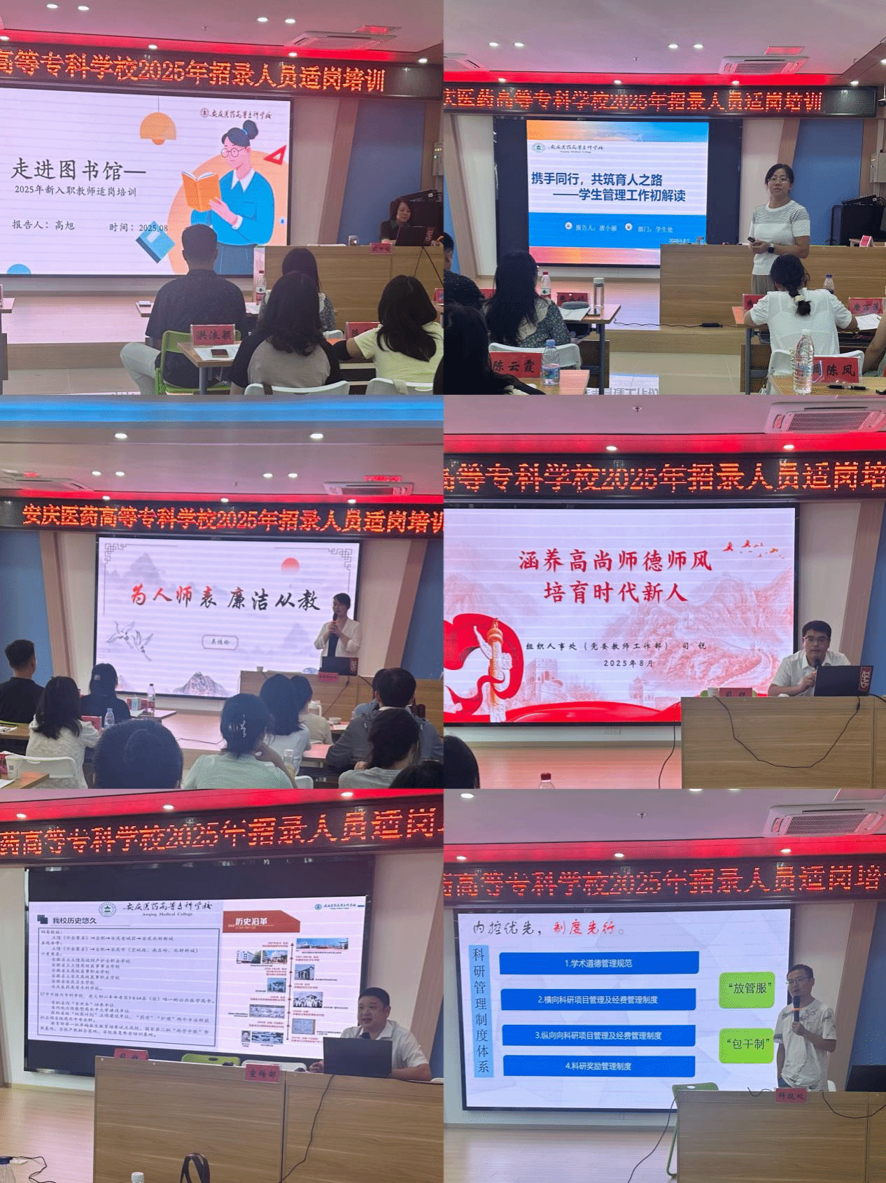 2025年招录人员适岗培训自8月25日至28日举行。党政办公室、监察审计处、组织人事处、宣传部、教务处、学生处等相关部门紧扣医药教育“护佑生命、守护健康”的特殊使命,从校史校训、师德师风、教学技能、科研入门,到学生管理、校园安全、后勤保障,全方位帮助新教师了解学校、适应岗位、融入集体。
