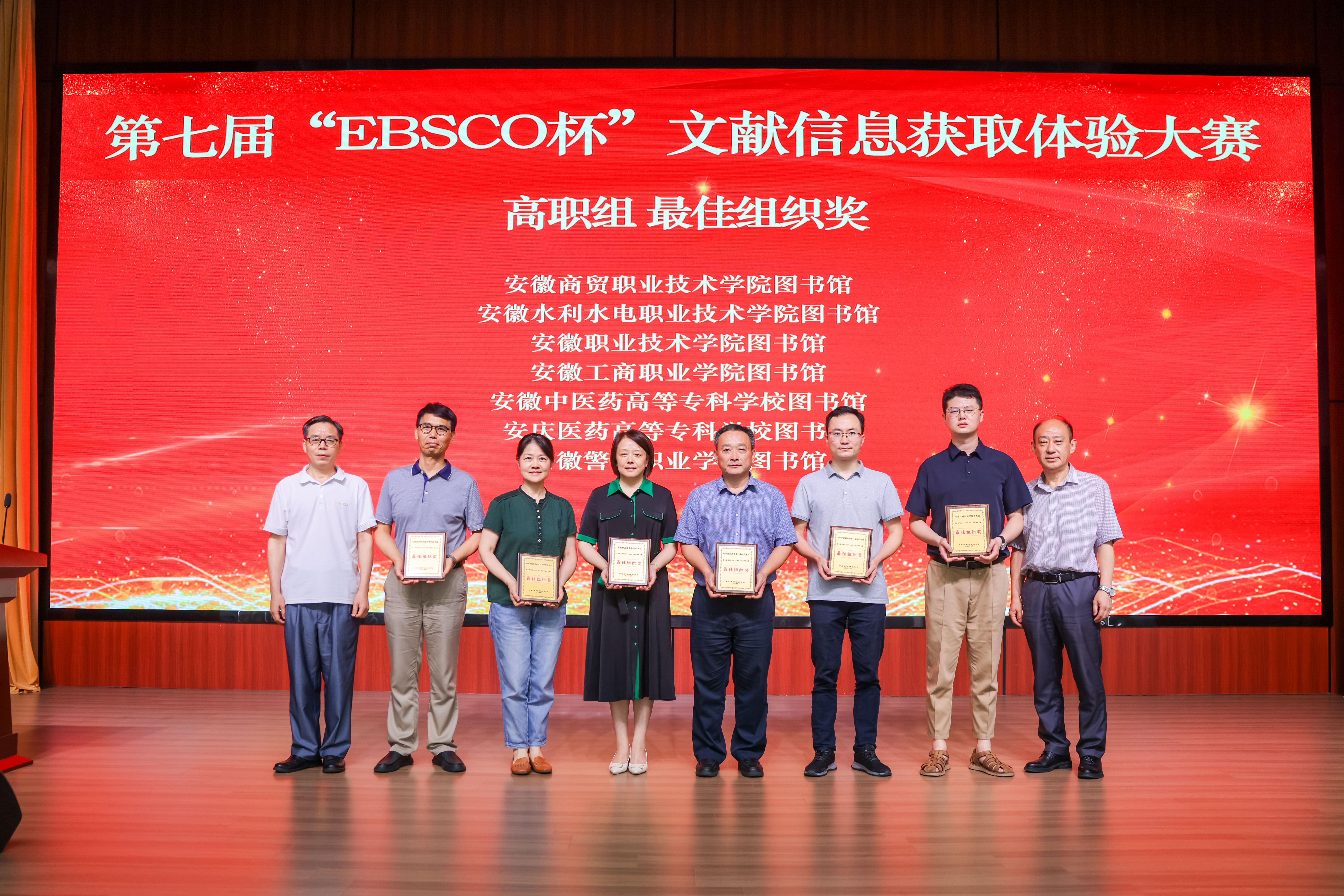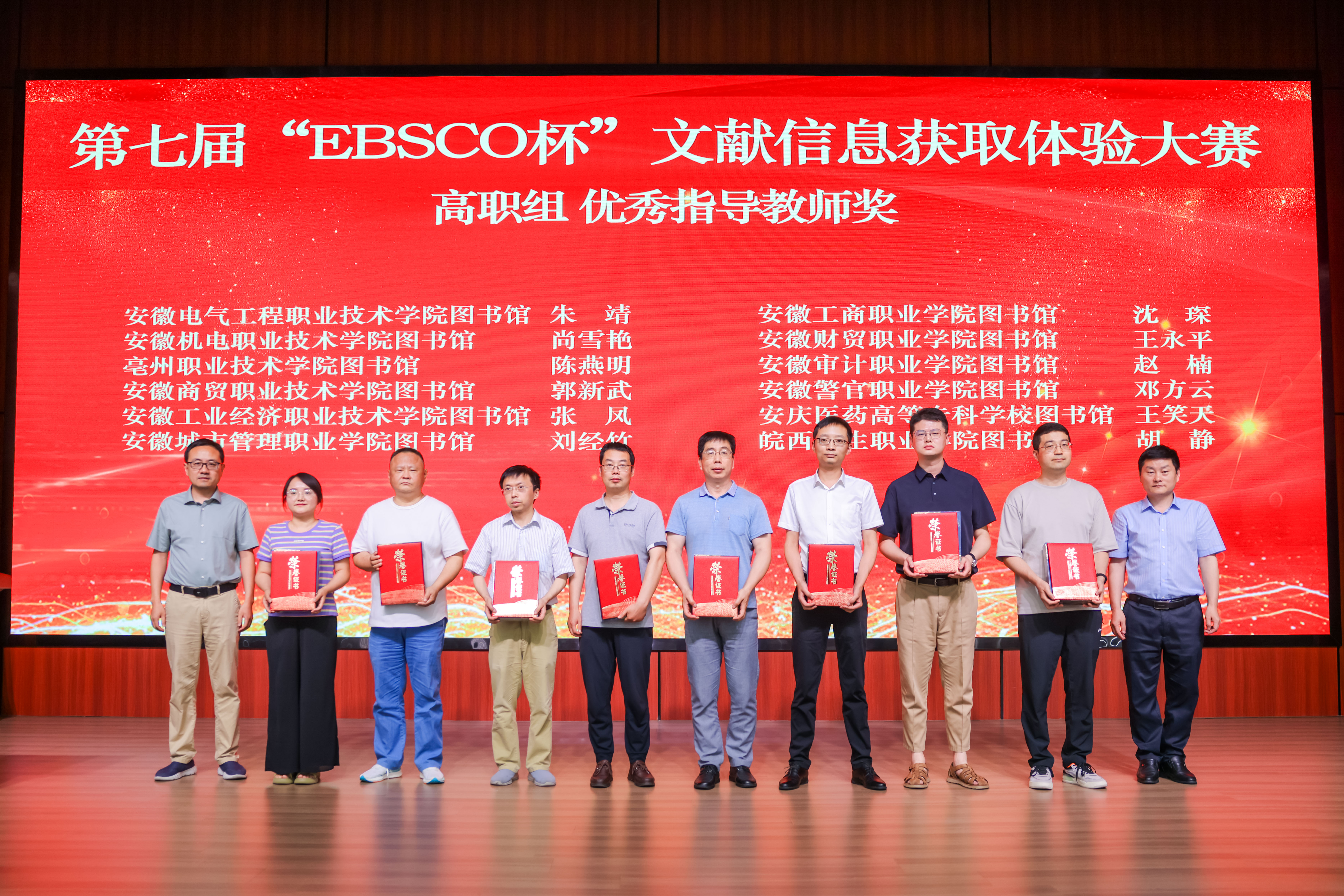 会议交流环节结束后,举行了“第七届ebsco杯文献信息获取体验大赛”现场颁奖仪式,高旭和王笑天分别接受了高职组“最佳组织奖”和“优秀指导教师奖”的颁奖。