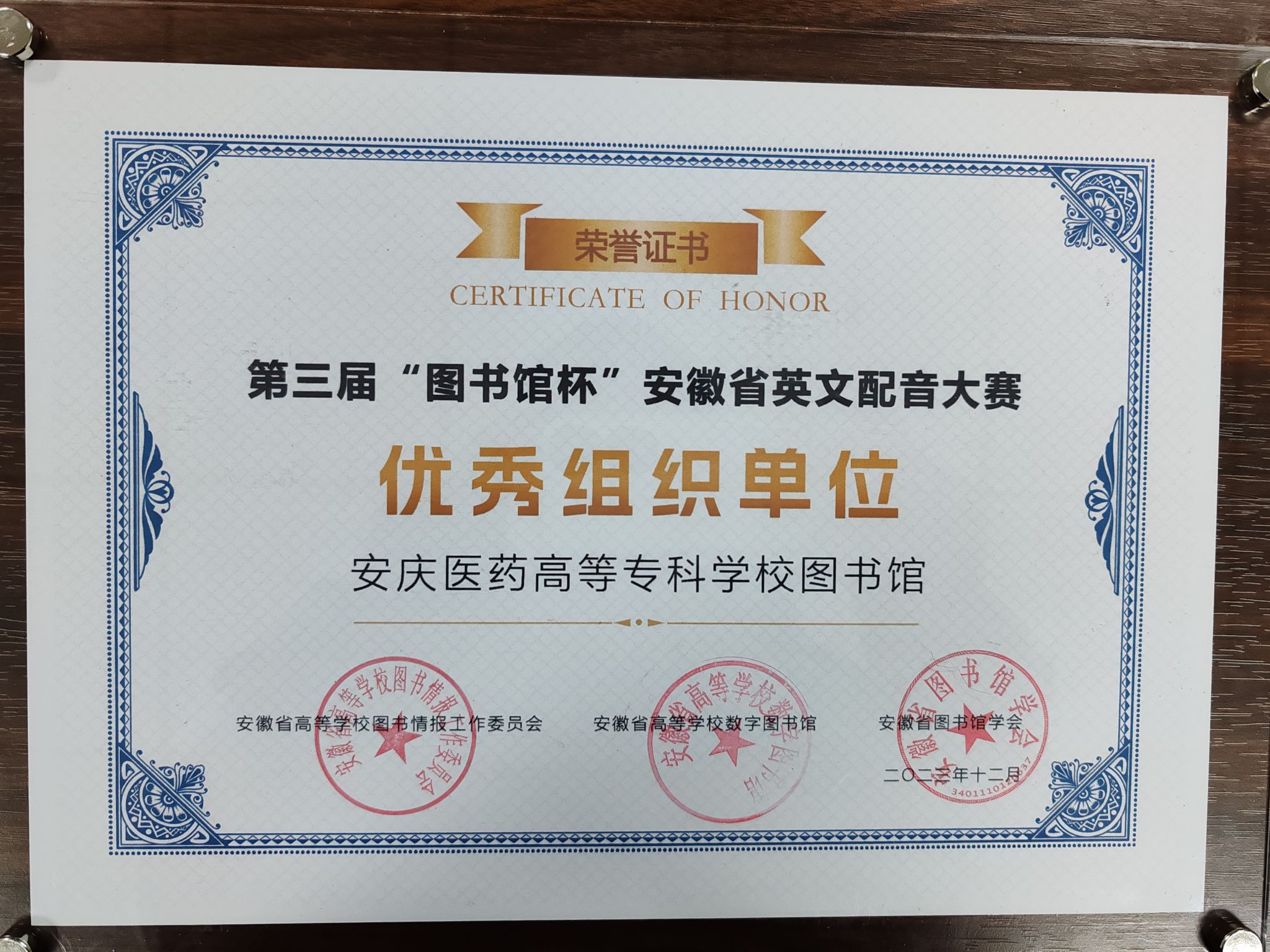 2023年12月24日,第三届“图书馆杯”安徽省英文配音大赛总决赛在安徽省图书馆落下帷幕,此次比赛由安徽省高等学校图书情报工作委员会、安徽省高等学校数字图书馆、安徽省图书馆学会联合主办,“阅途”文化集团承办。