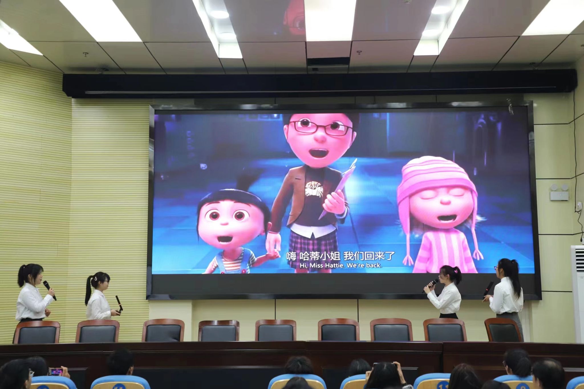 闭幕式上,主办方图书馆用PPT与现场观众一起回顾了第九届校园读书节的精彩瞬间以及获奖师生名单,并播放了“书香袅袅 隽远流长”第九届校园读书节活动宣传视频,并结合视频对“智慧图书馆”(一期)项目的主要软硬件设备进行推介。获第三届“图书馆杯”安徽省英文配音大赛高职组三等奖和优秀奖的两组队伍为观众带来了精彩的现场英文配音表演,学生惟妙惟肖的演绎赢得了听众的热烈掌声。