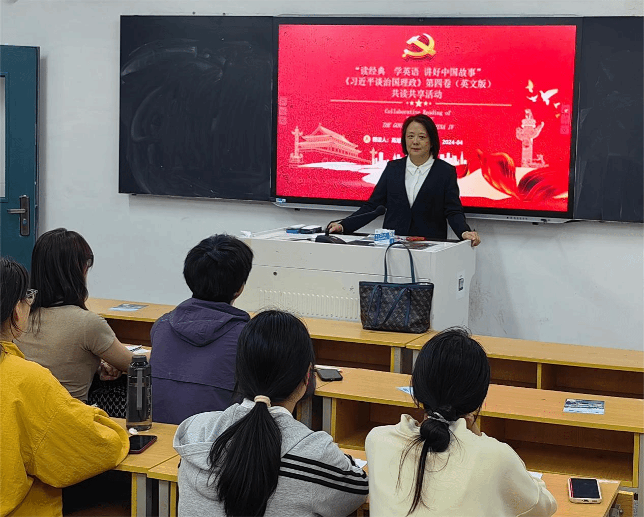 为进一步发挥图书馆第二课堂作用,提升学生用英语“讲好中国故事”的能力,4月22日晚上6:30至8:00,校图书馆在教学楼2104教室开展了“读经典、学英语、讲好中国故事”--《习近平谈治国理政》第四卷(英文版)共读共享第一次活动,指导老师图书馆馆长高旭教授,来自全校英语成绩较好的31位学生参与活动。
