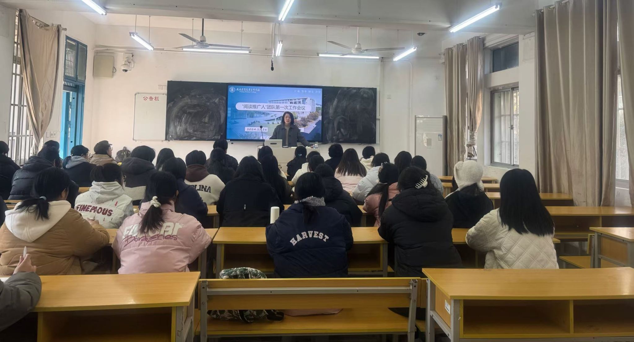 她还就各班级如何有效实施阅读推广活动提出了具体建议,并现场解答了同学们的疑问,强调了阅读推广活动不仅要精心策划,还要加强活动过程的管理和结果的反馈;最后,她倡导阅读推广人发挥核心作用,动员更多同学积极参与阅读活动,为后续图书馆各项阅读赛事的顺利开展打下坚实基础!
